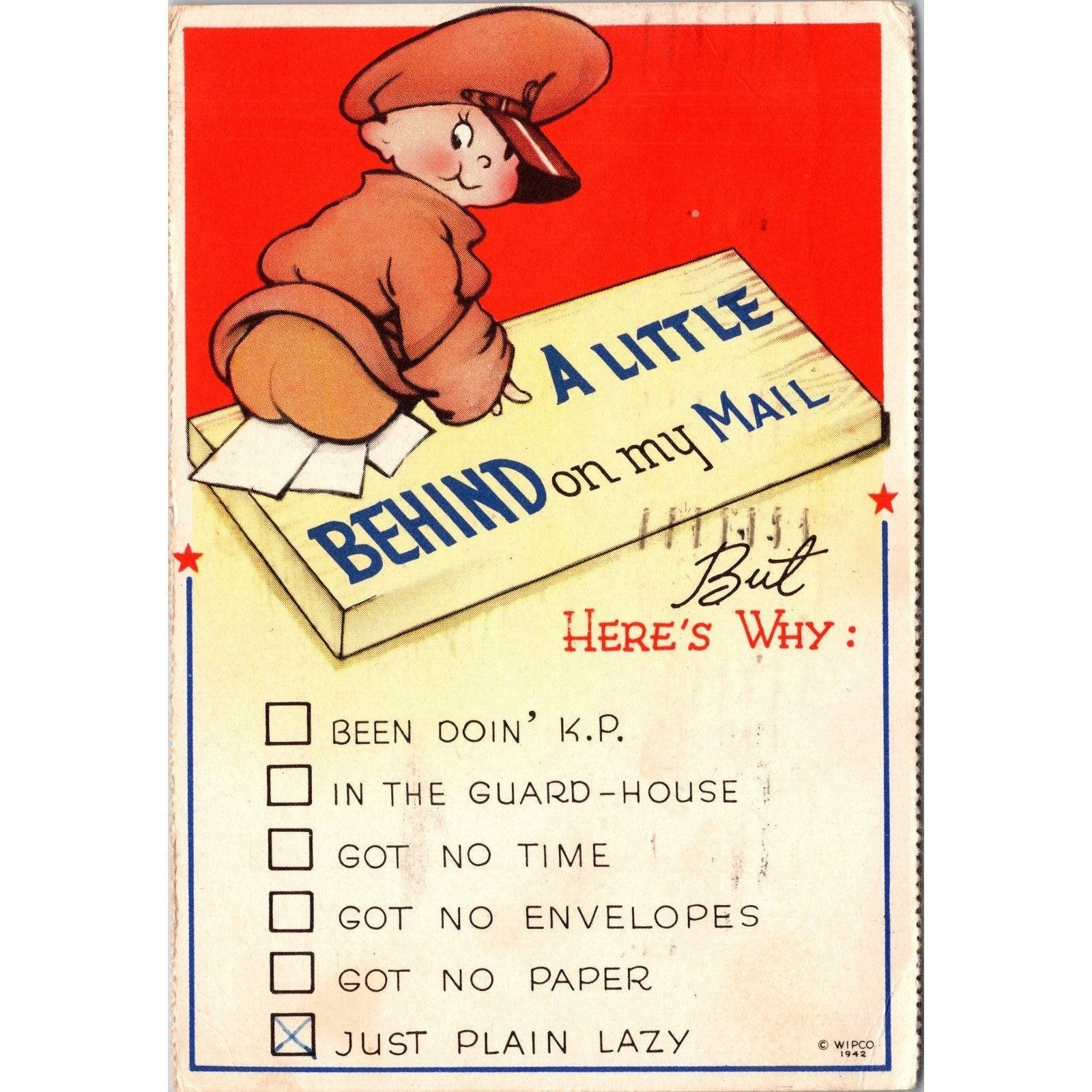 A Little Behind On My Mail Baby In Uniform Postcard Wipco 1942