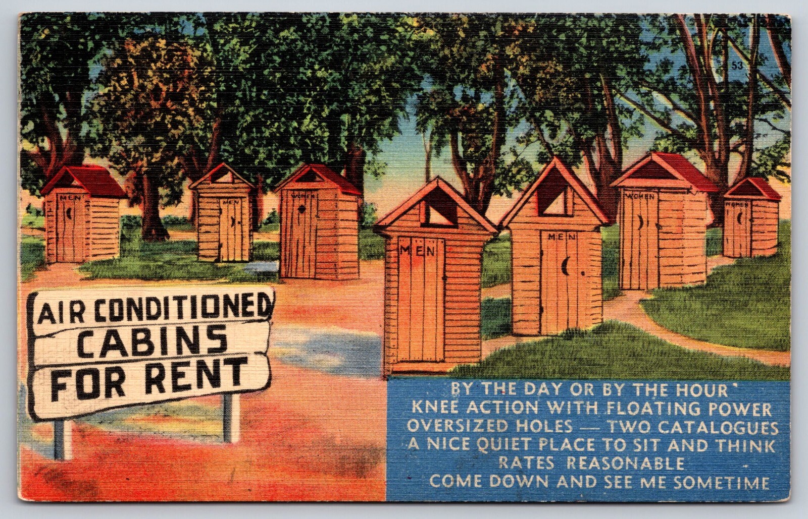 Air Conditioned Cabins For Rent Postcard Outhouses Postcard