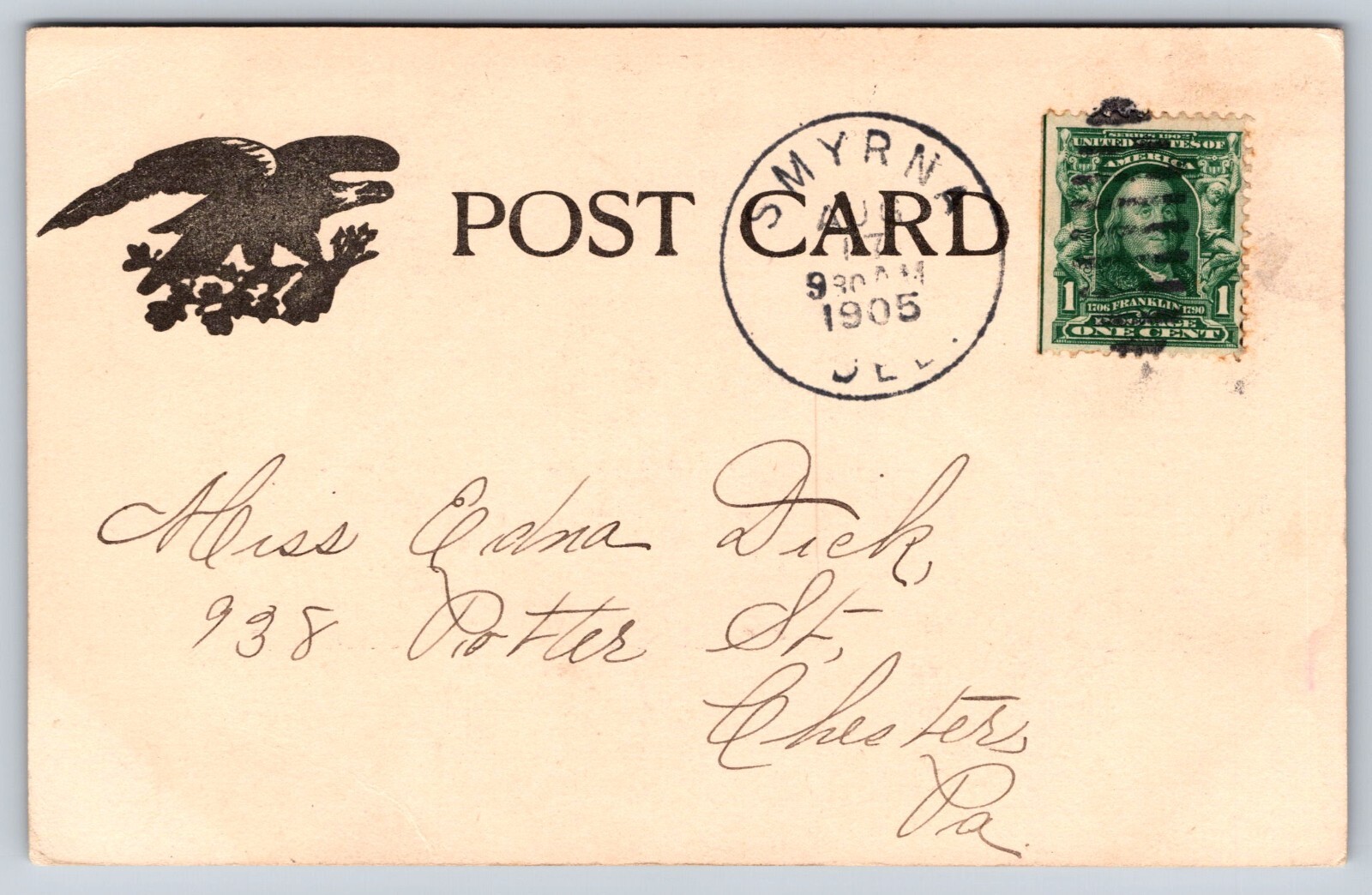circulated. The postmark date says Aug 17 1905 It has a 1 cent stamp. It is
