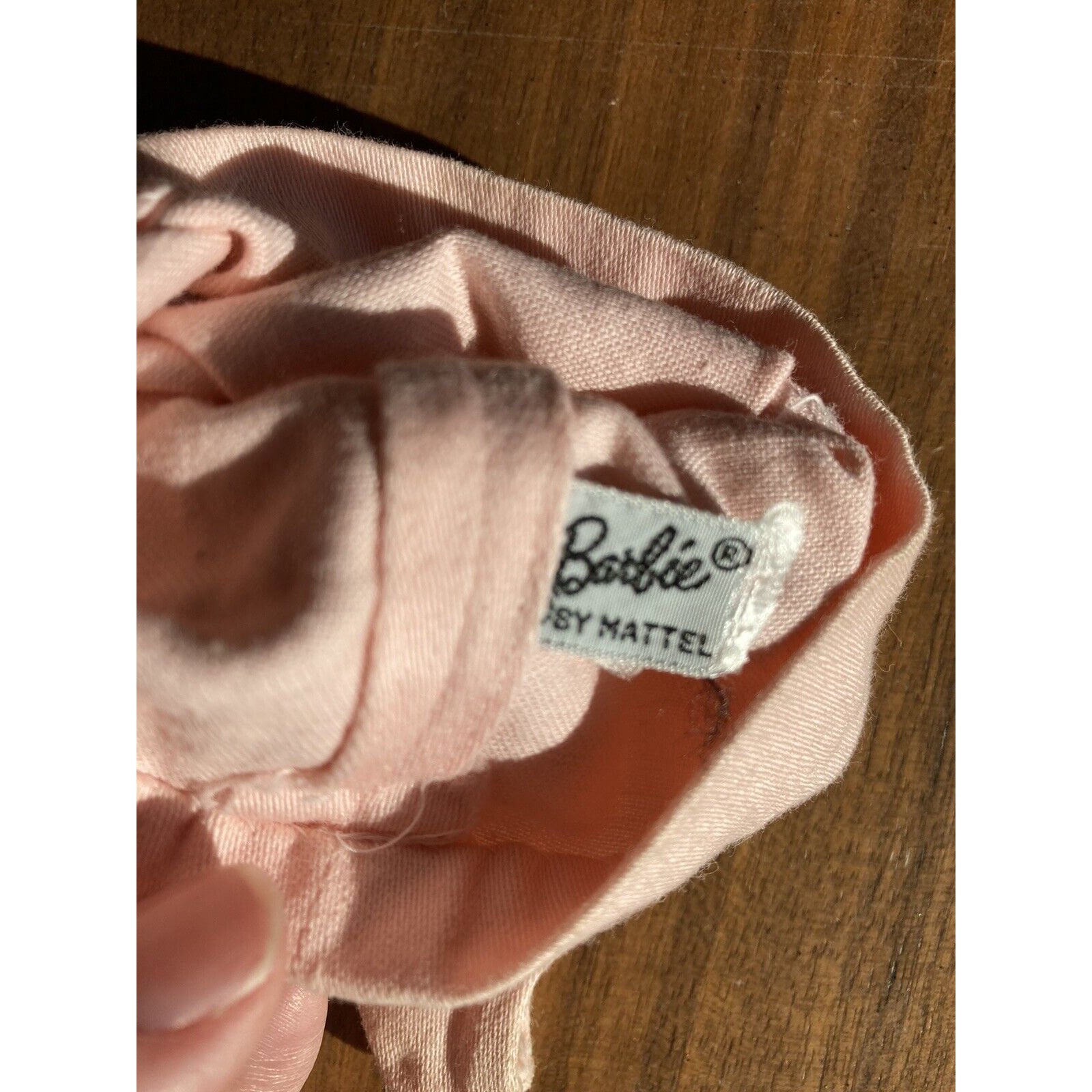 Barbie Doll Clothes PAK Outfit Pale Pink Cotton Campus Belle Bow Dress Vintage