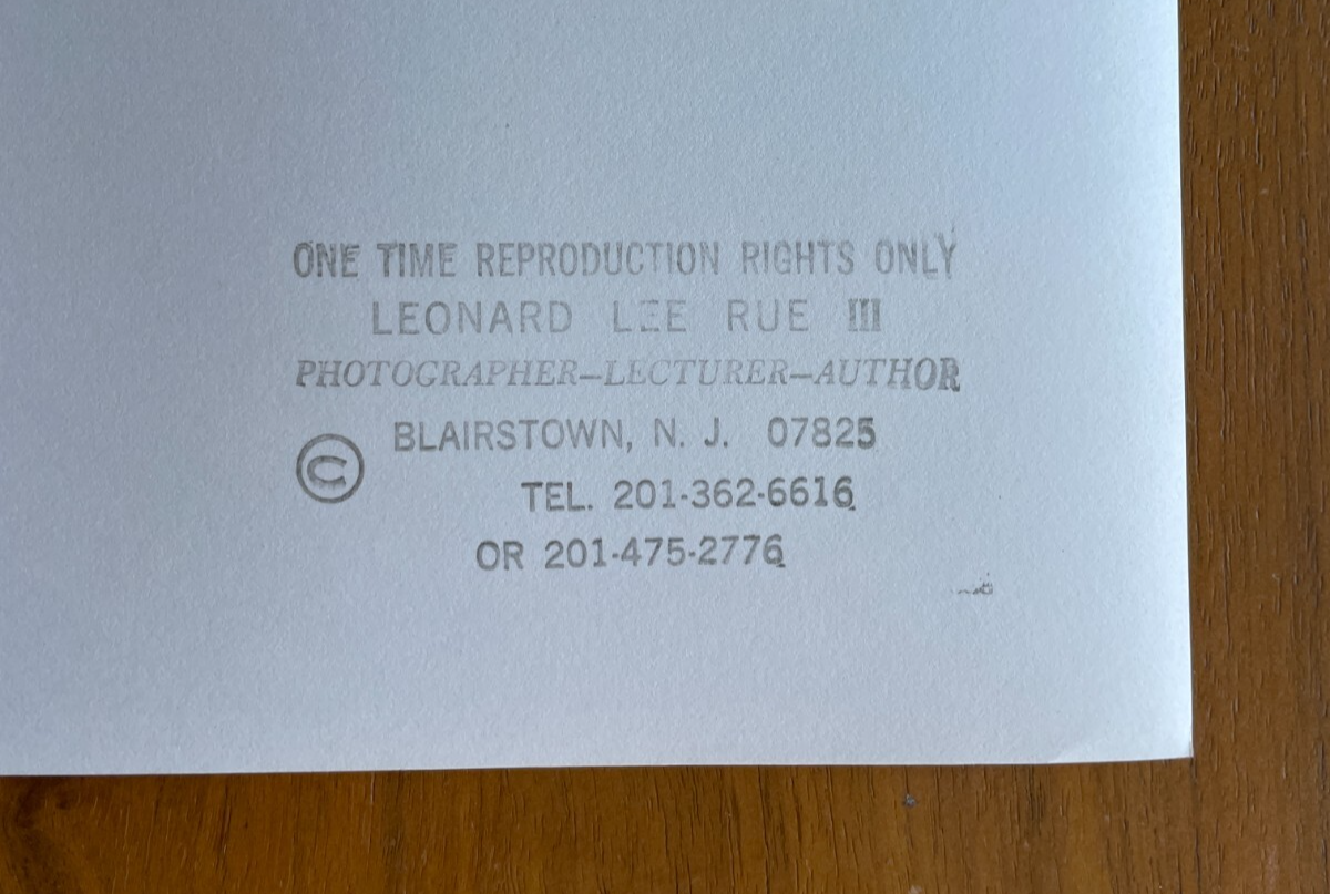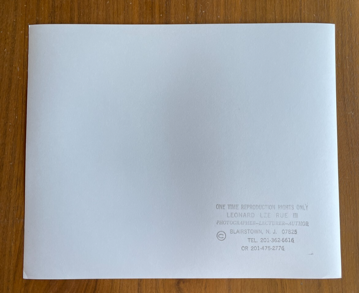 Here we have a Beaver Photo Leonard Lee Rue III Photographer. It is approx 8” tall x approx 10” wide. It is in good condition. It does have some wear and imperfections. It has some staining on the back. See photos for more info.