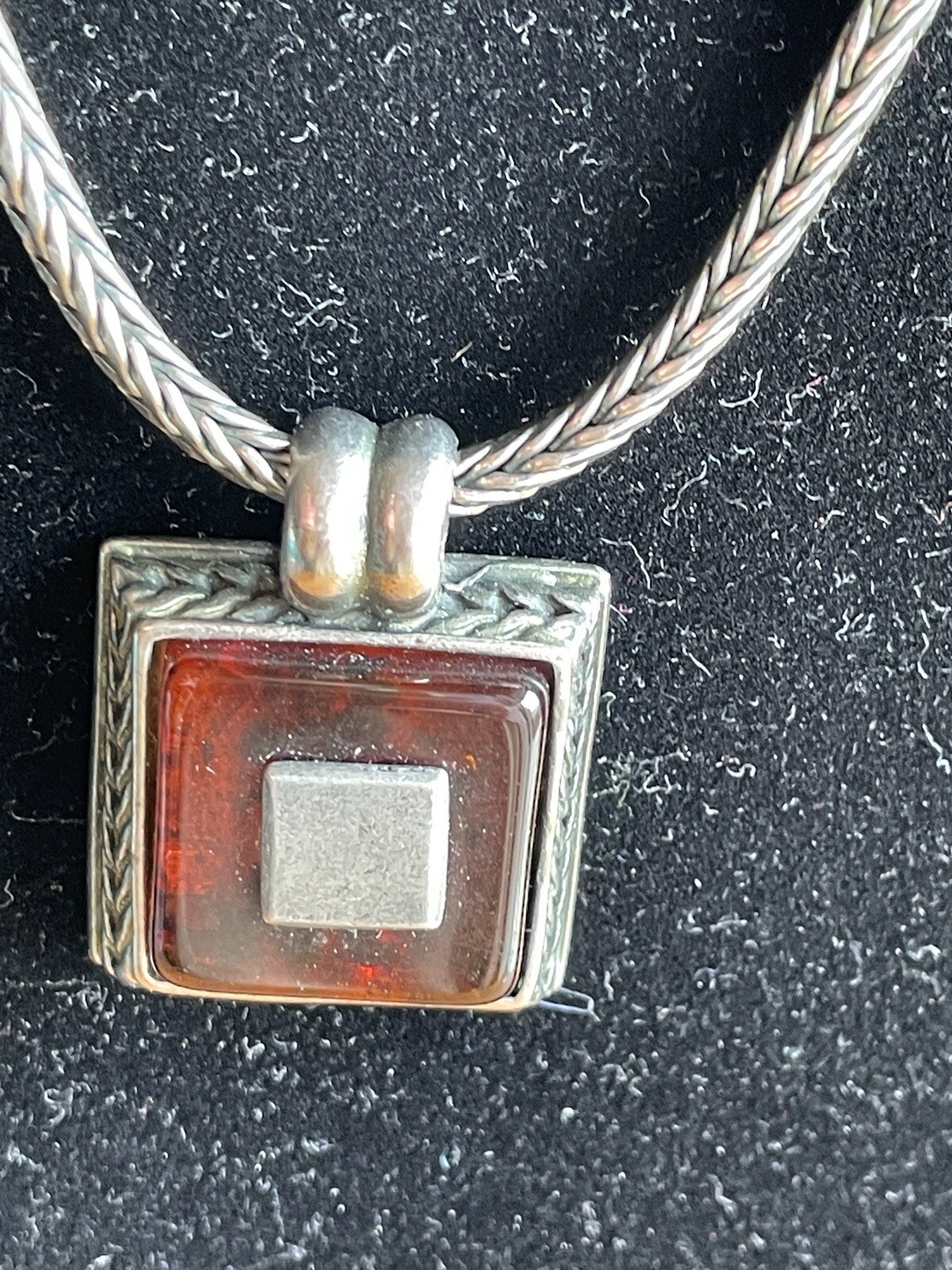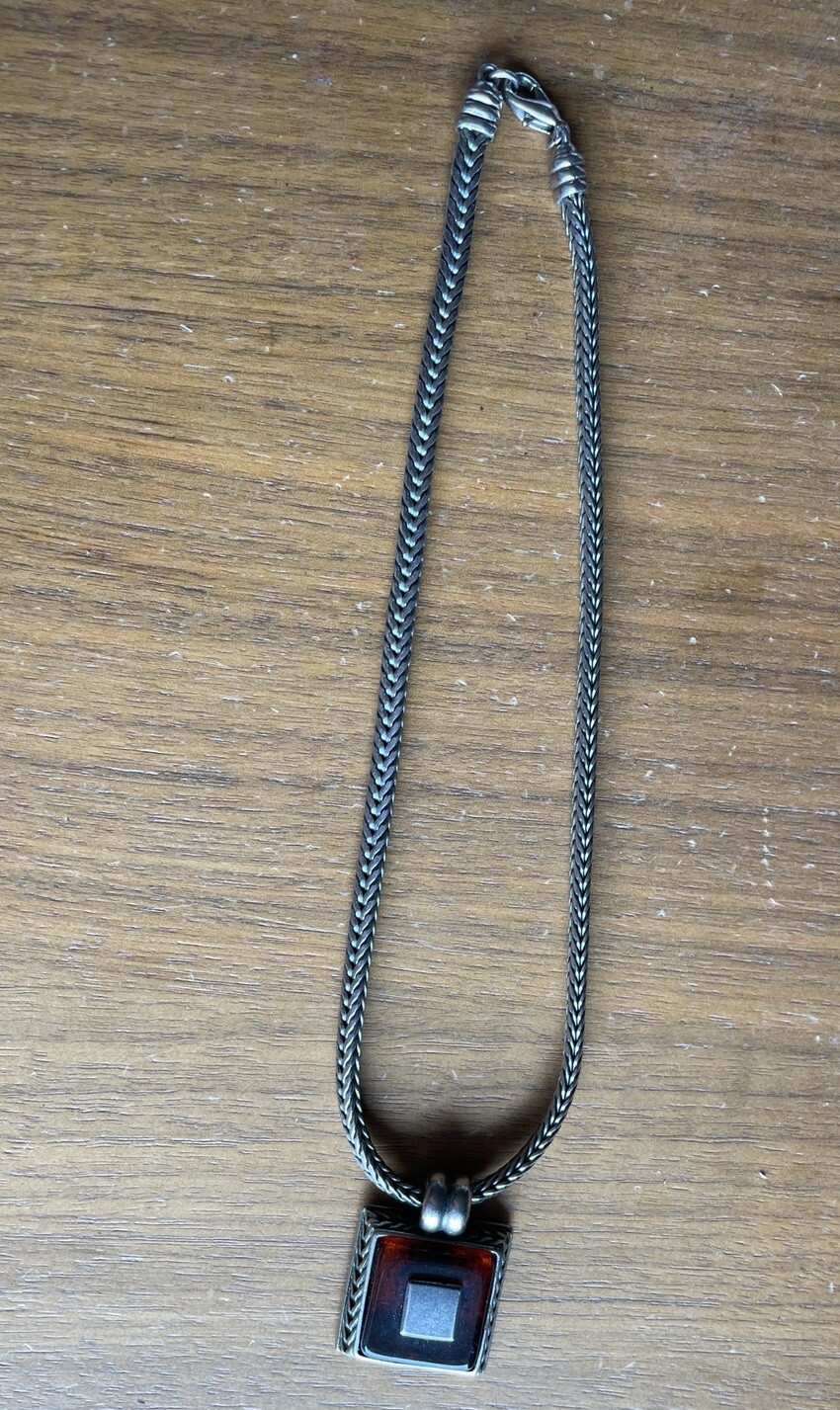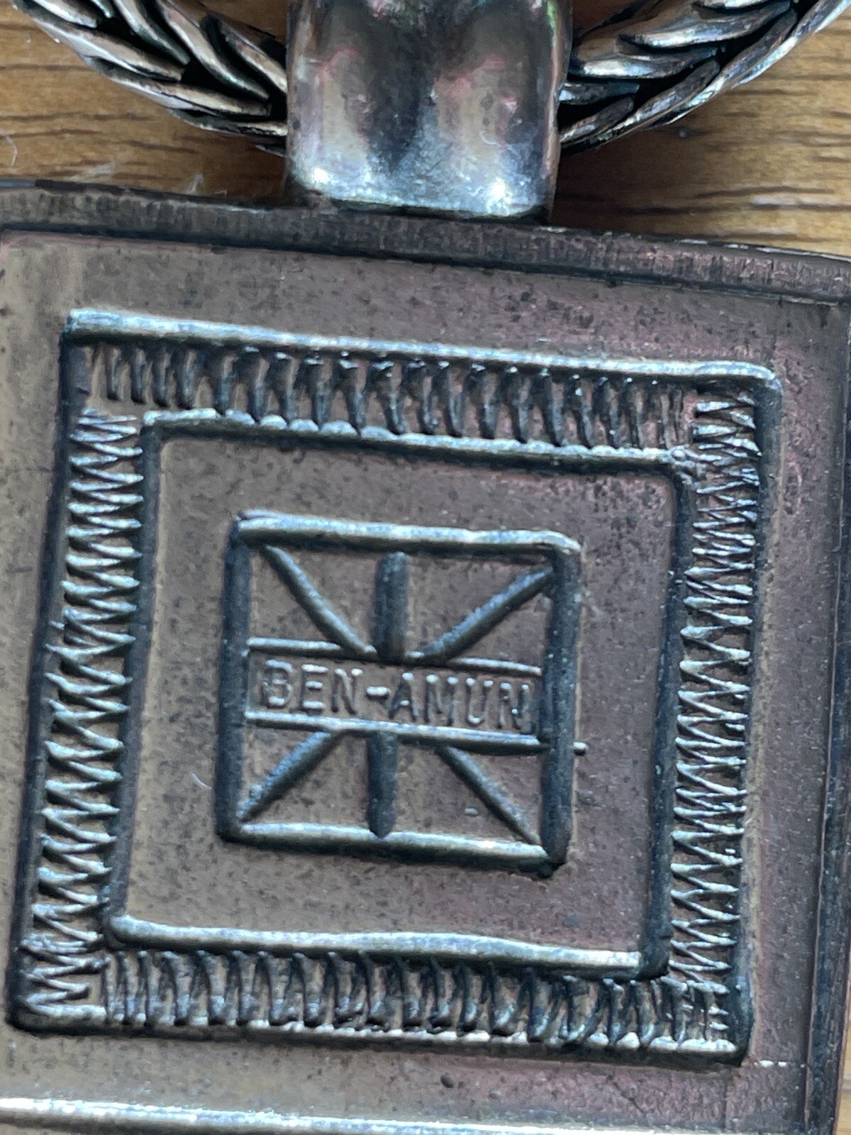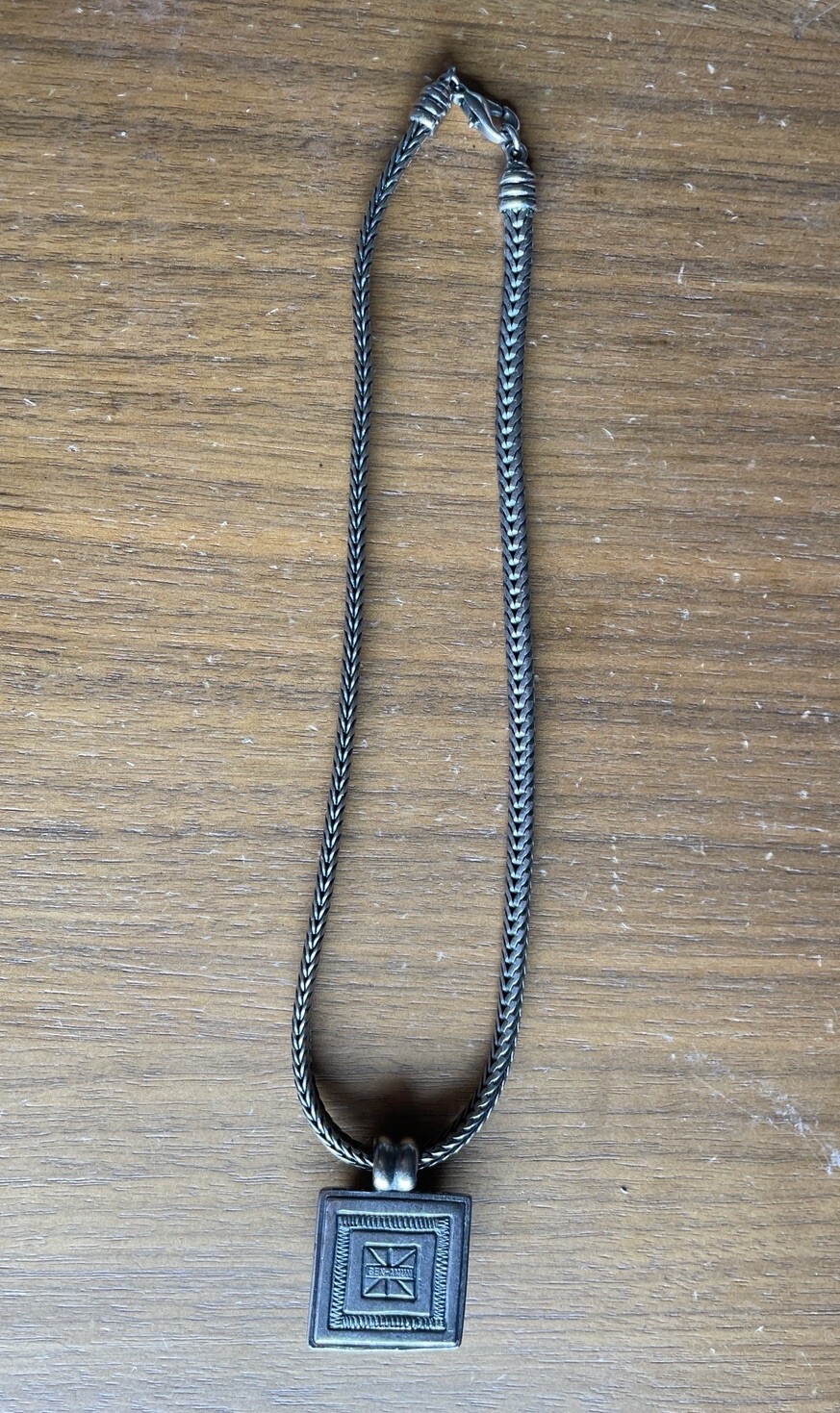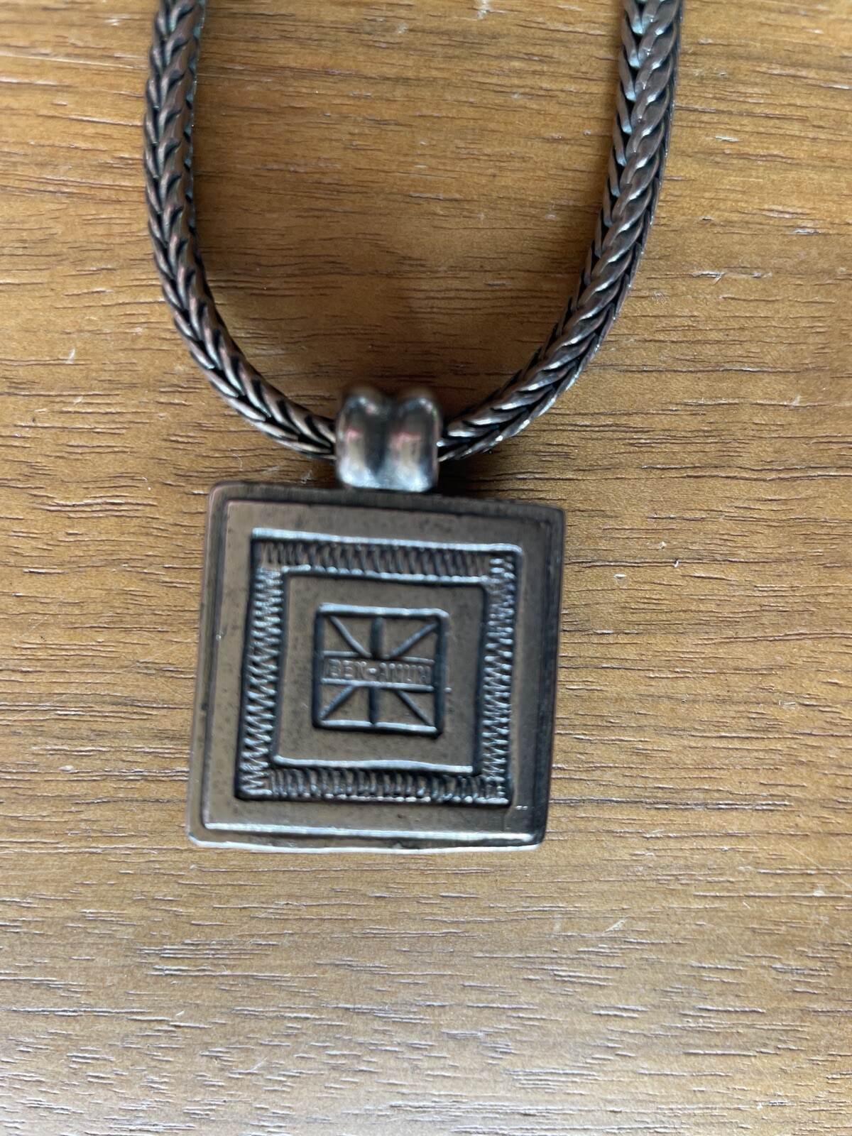 approx 1″ long. The chain is approx 7″ long. It is in good condition. It does have some wear and imperfections.