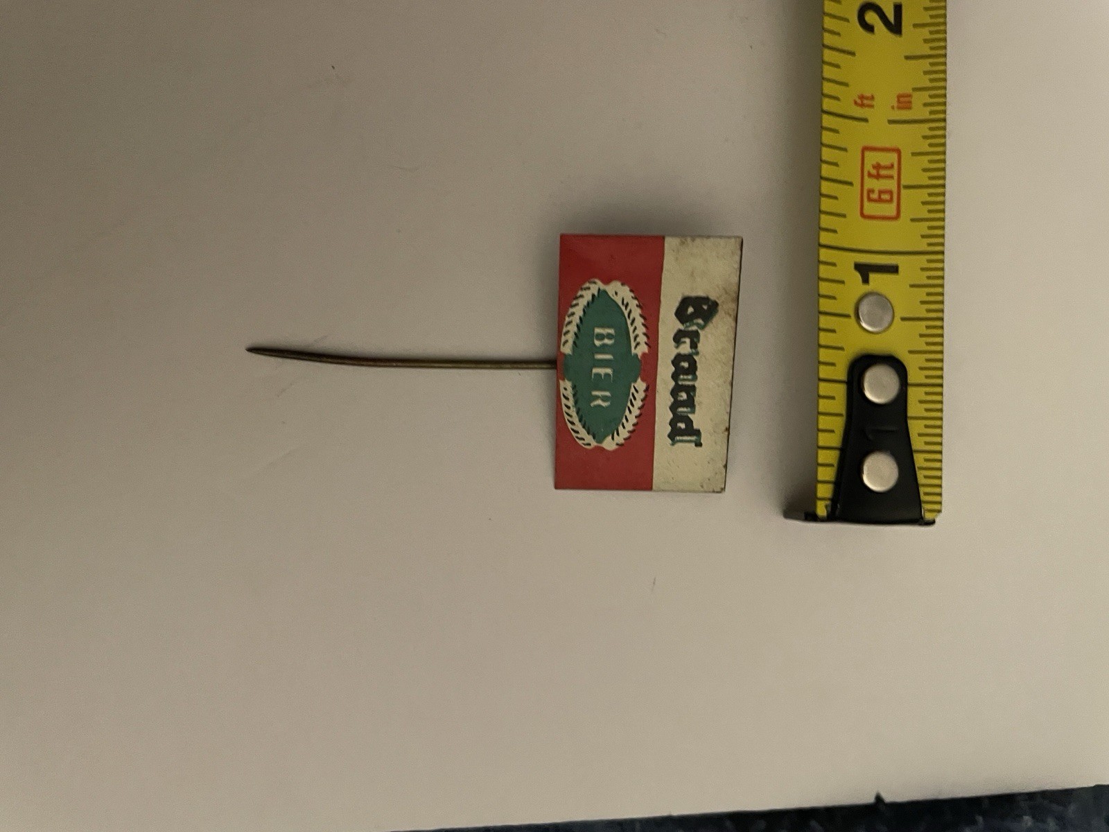 Advertising Hat Stick Pin. It is approx 1″ wide by approx 1 1/2″ tall. It is in good condition. It does