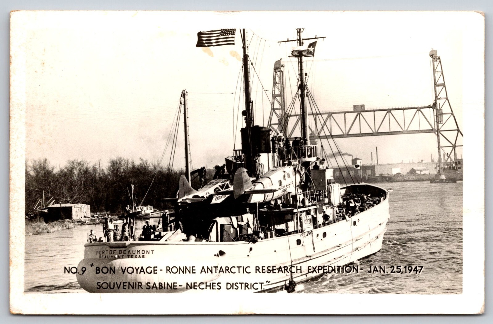 Bon Voyage Ronnie Antarctic Research Expedition Ship 1947 Postcard RPPC Texas