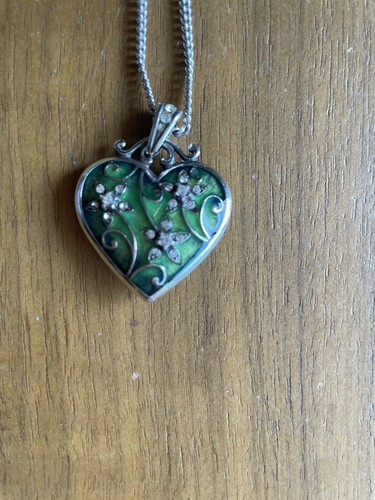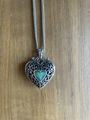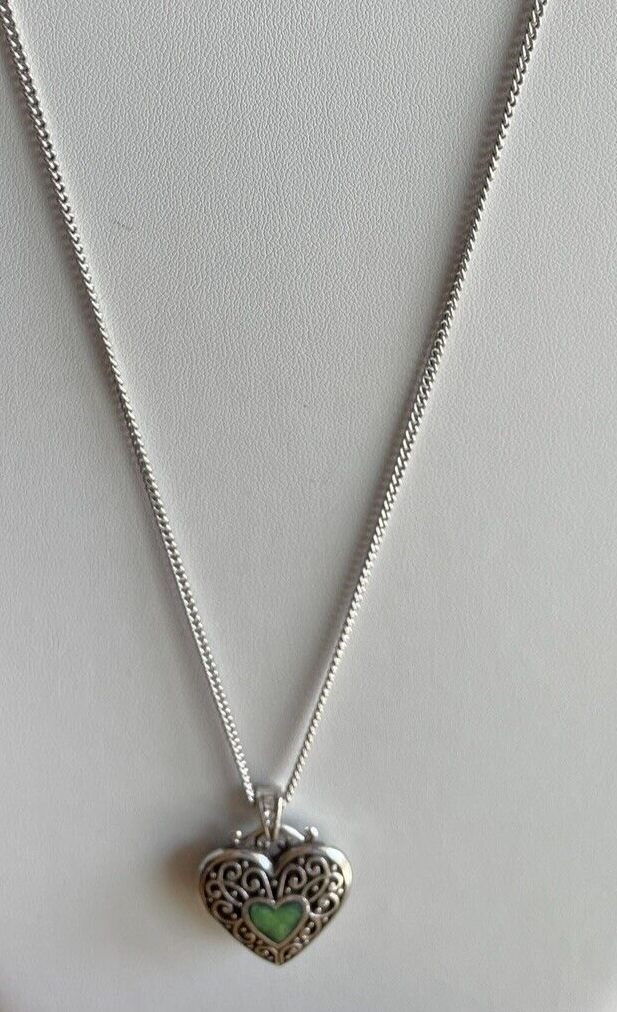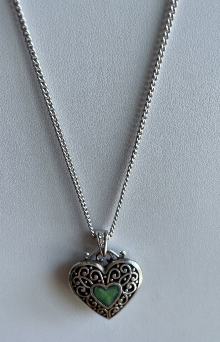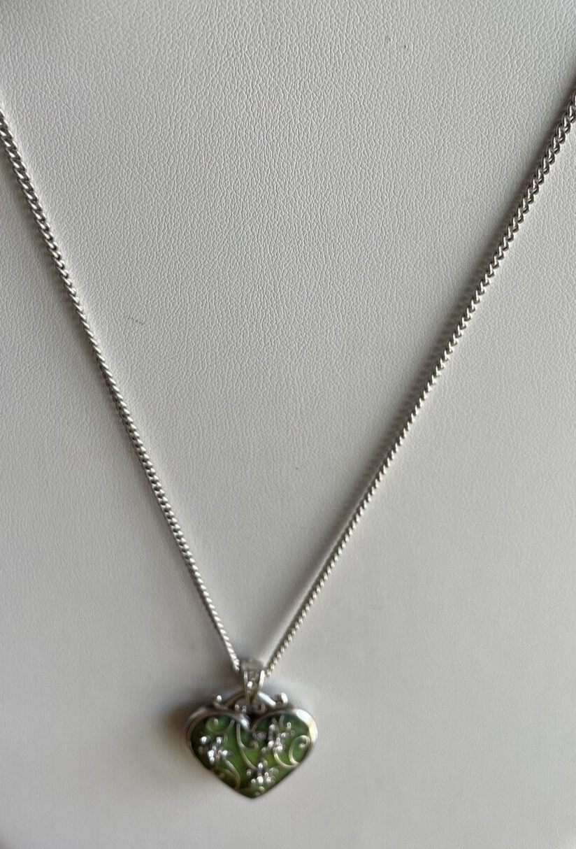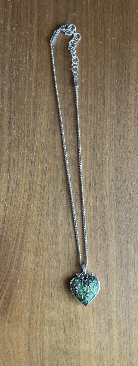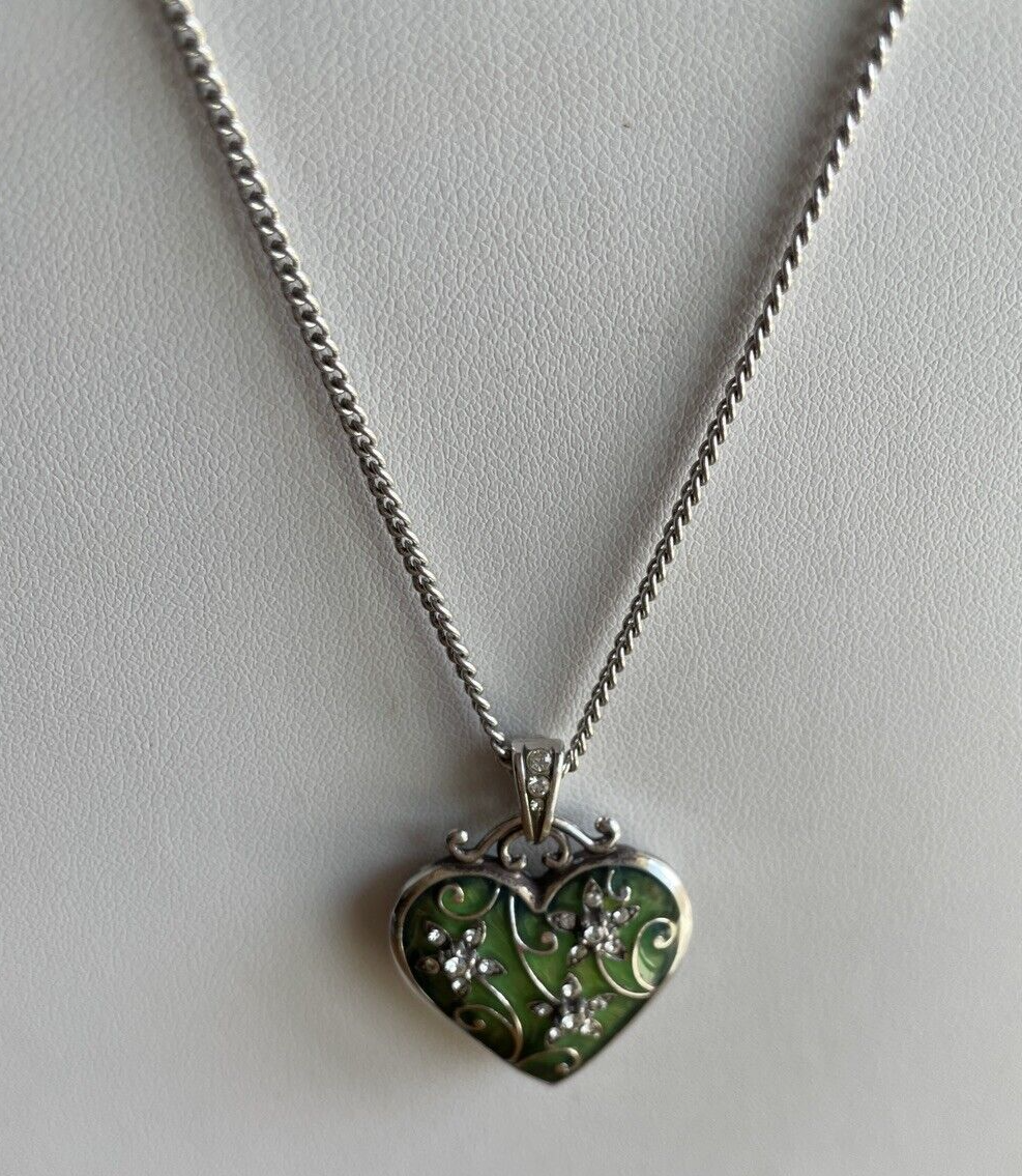 Brighton Mystique Heart Green Enamel Reversible Heart Swarovski Crystal Necklace