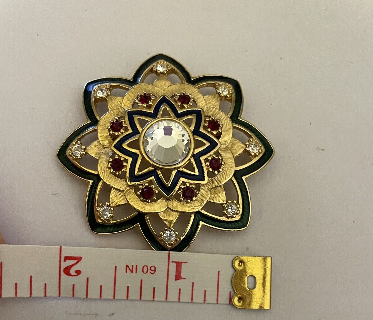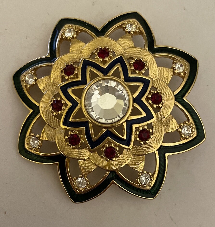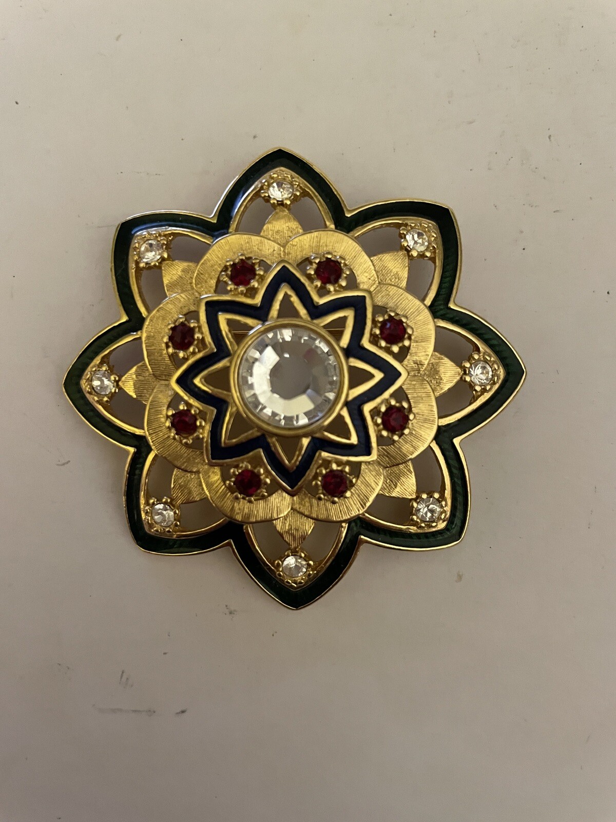 Camrose Kross Jackie Kennedy Gold Tone Rhinestones Flower Star Brooch Pin