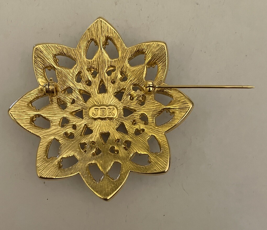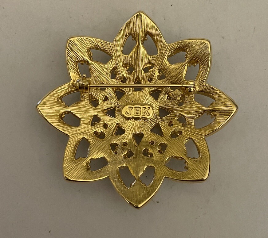 Jackie Kennedy Gold Tone Rhinestones Flower Star Brooch Pin. It was made by
