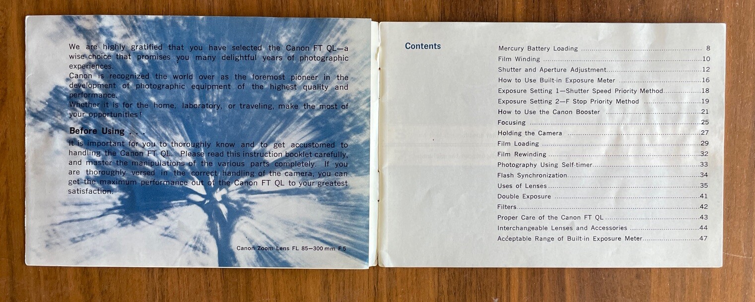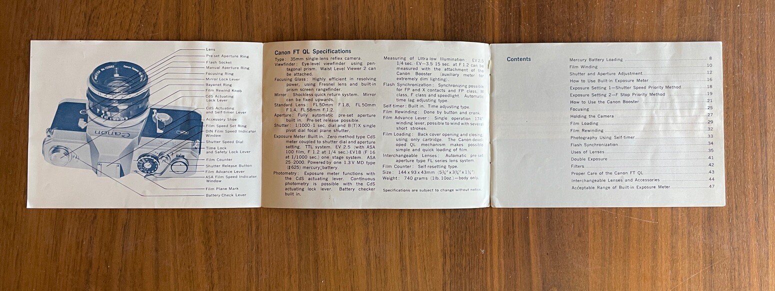 Canon QL FT Camera Instructions Manual Booklet Vintage
