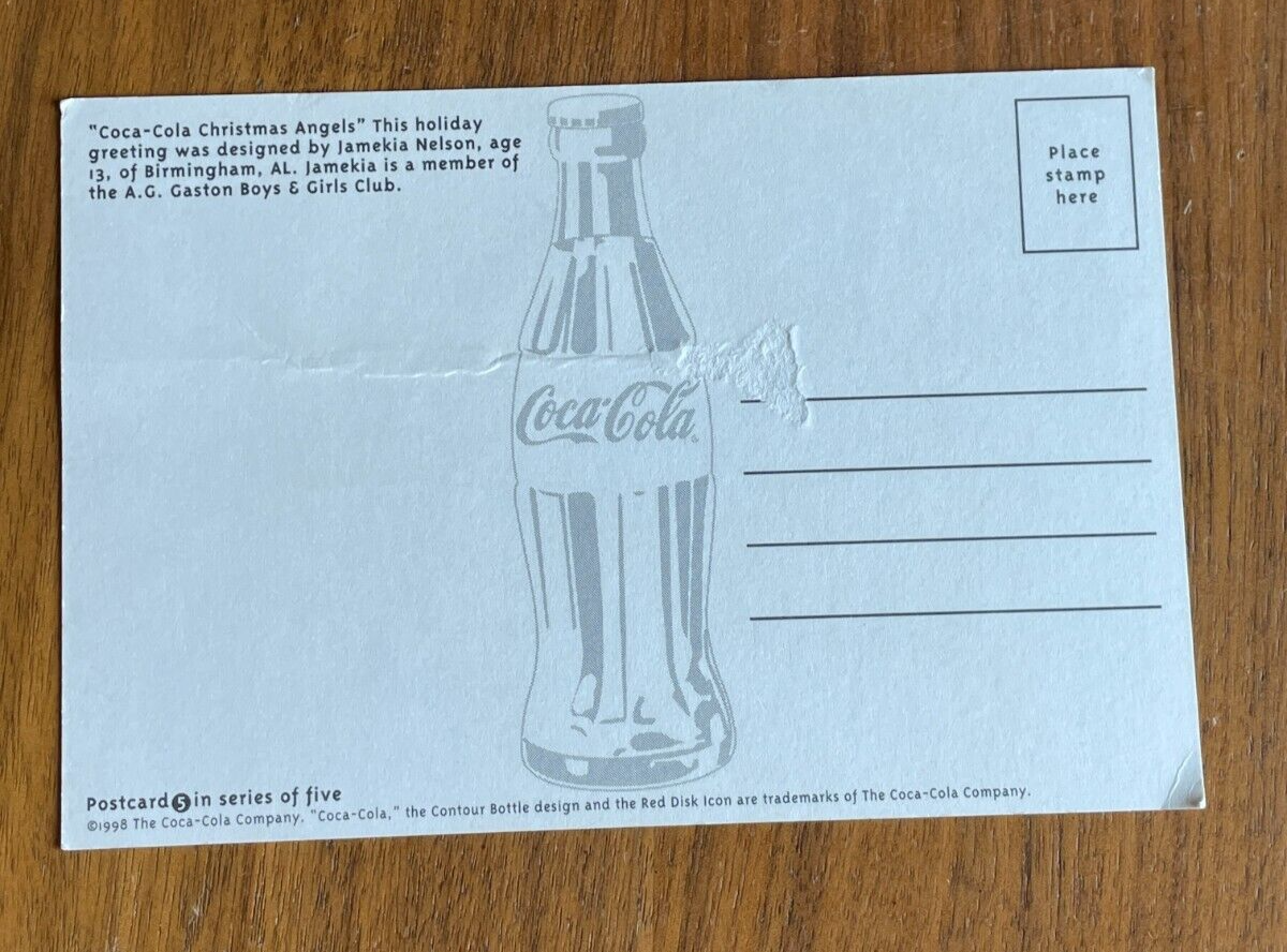 Coca Cola Christmas Angels Postcard Continental Size Postcard