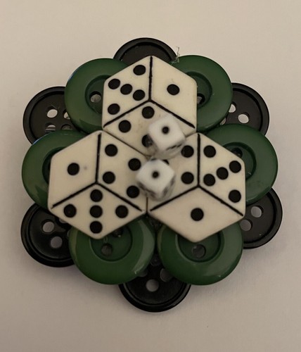 Here we have a Dice Pin Dice Game Buttons Pin Brooch Gambling Pin. It is handmade.