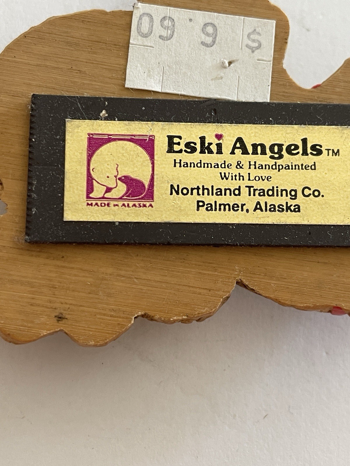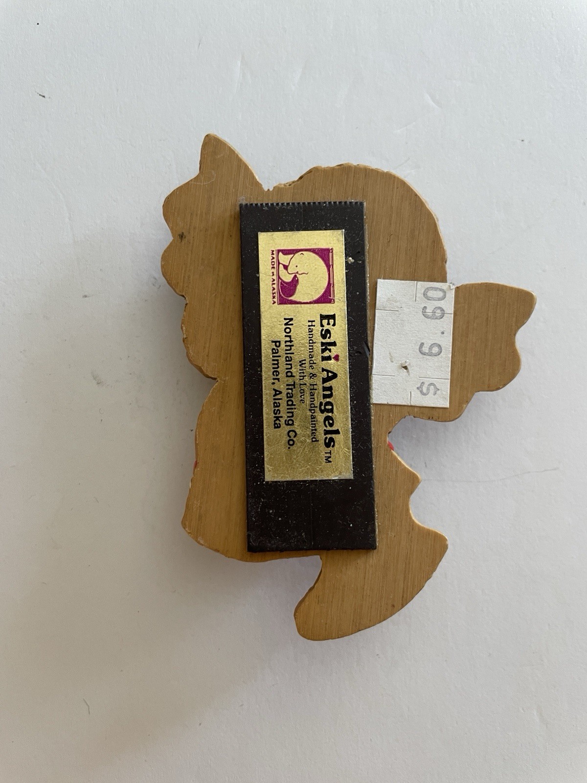 Magnet. Handmade & Handpainted with Love Northland Trading Co Palmer Alaska. It is approx 3″ tall x approx 2″ wide. It is in good condition. It does have some wear