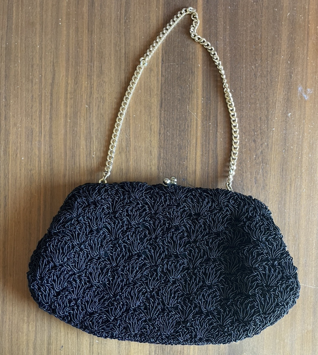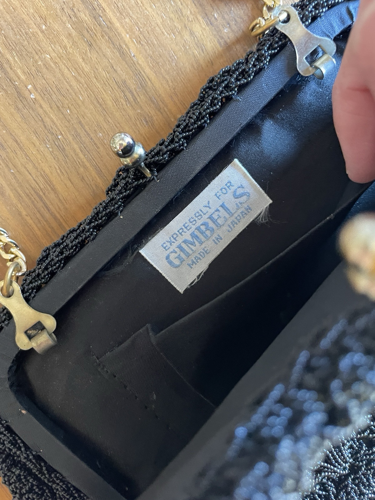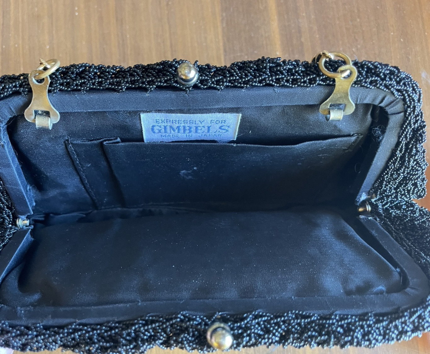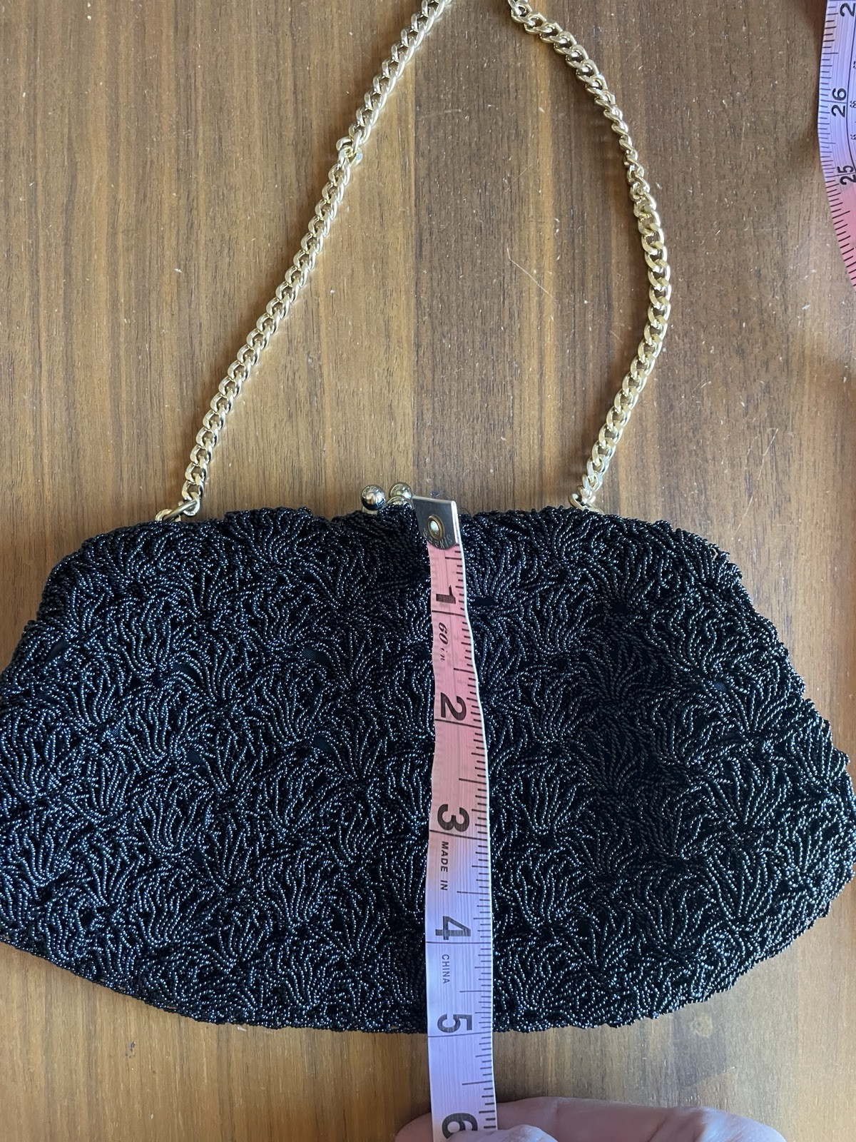 Expressly For Gimble’s Black Beaded Purse Vtg Gimble’s Evening Bag Made In Japan