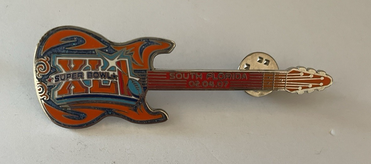 Here we have Hard Rock Cafe Guitar Pin Super Bowl XLI 2-4-07 South Florida Pin. It is approx 3″. It is in good condition. It does have some wear and imperfections. See the photos or more info.