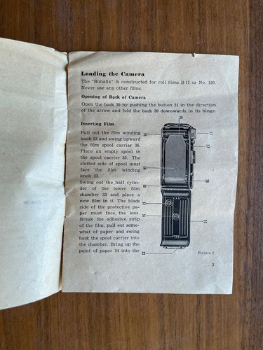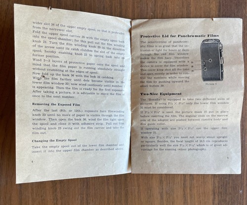 The Bonaxix Rolfix Jr. Two Size Camera Manual Instruction Booklet. It is approx.