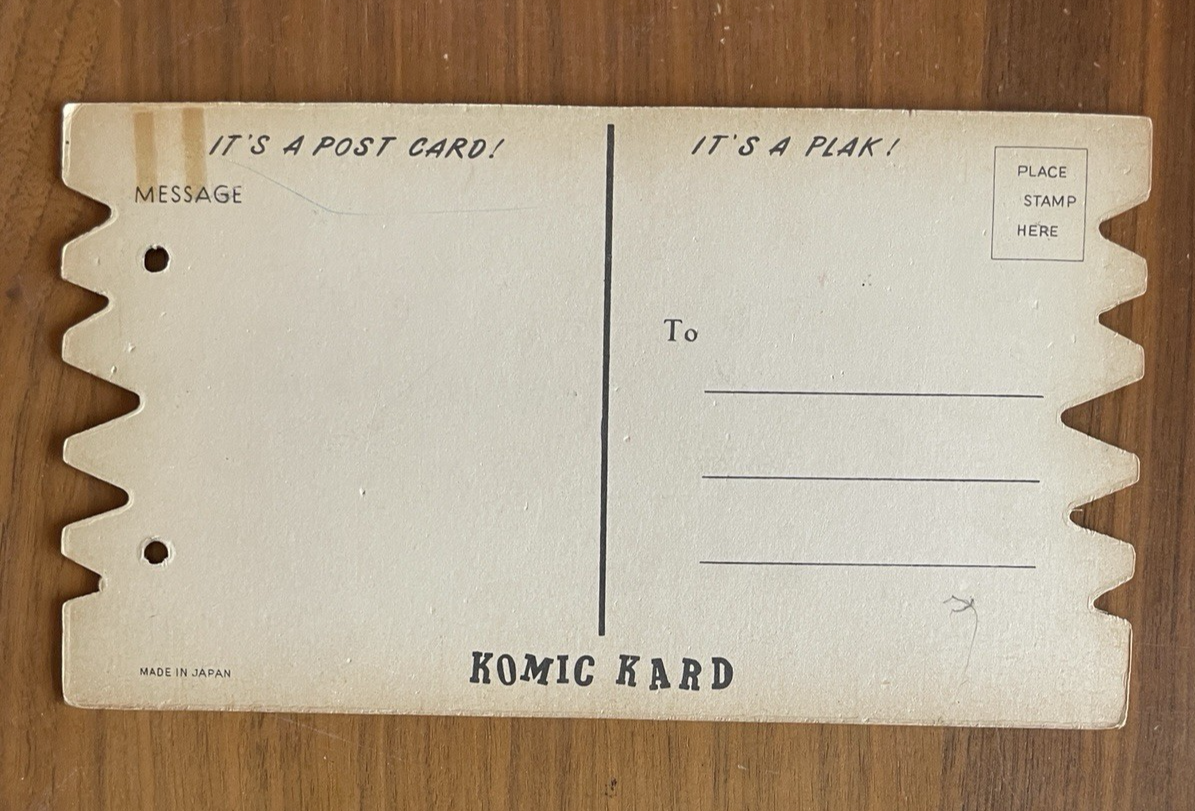Coat Funny Postcard. The back says Komic Kard made in Japan. This is a larger