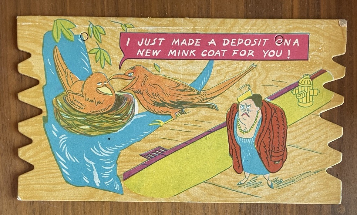 I Just Made A Deposit On A New Mink Coat For You Birds Postcard Vintage