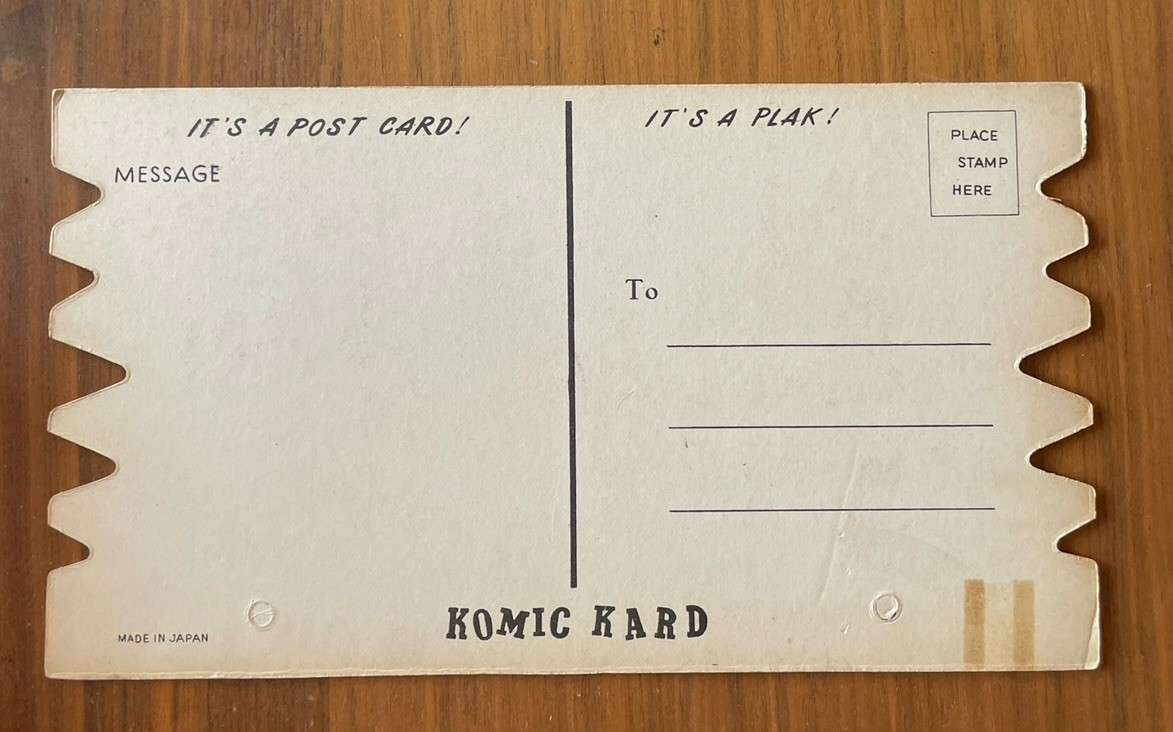 Coat Funny Postcard. The back says Komic Kard made in Japan. This is a larger