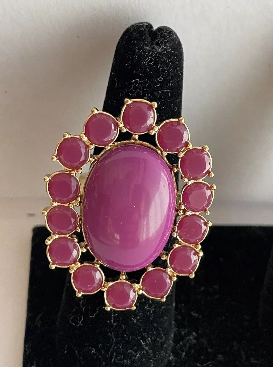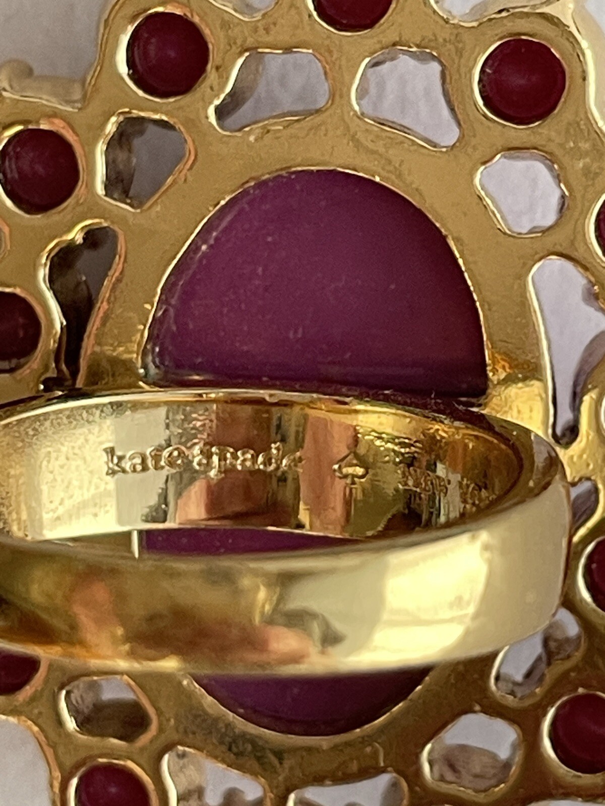 Kate Spade NY Pasiley Park Cocktail Ring Large Purple Stone Ring Size 6.5