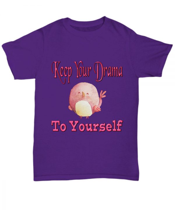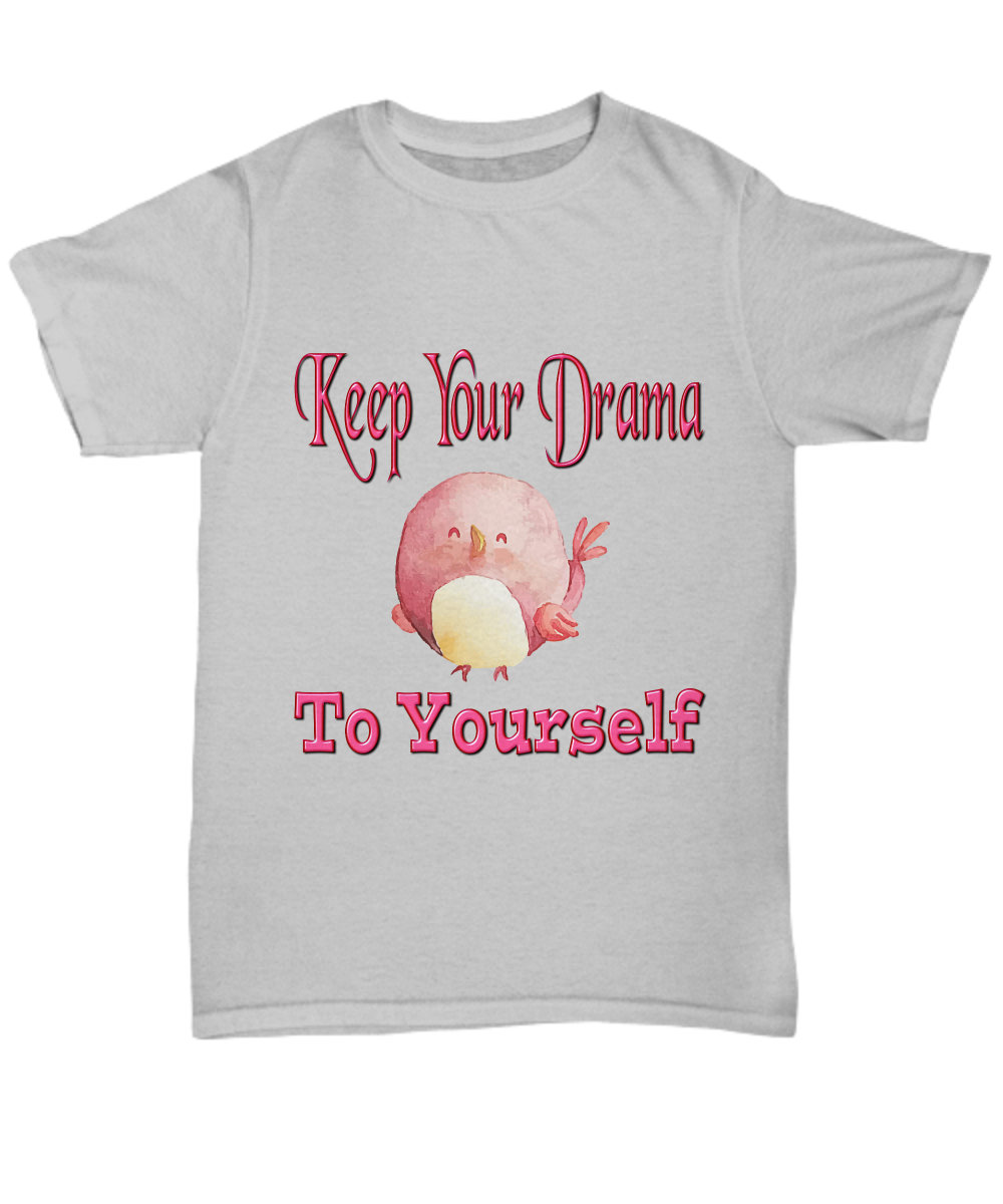 Here we have a Keep Your Drama To Yourself Happy Bird Tshirt. This is an exclusive product by Your GiftShoppe. It is brand new.