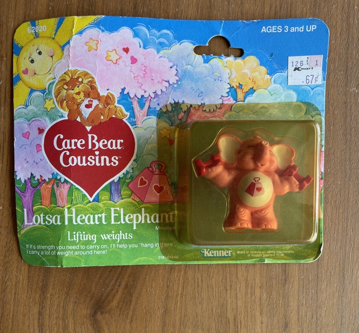 Care Bears Cousins Lotsa Heart Elephant Miniature Figure 1985 NOS Package Wear.
