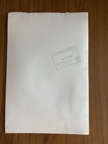 Wallis Productions. It is signed to Larrisa. The back is stamped Approved Aug 16