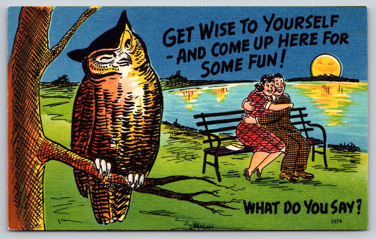 Owl Get Wise To Yourself And Come Up Here For Some Fun Couple On Bench Postcard