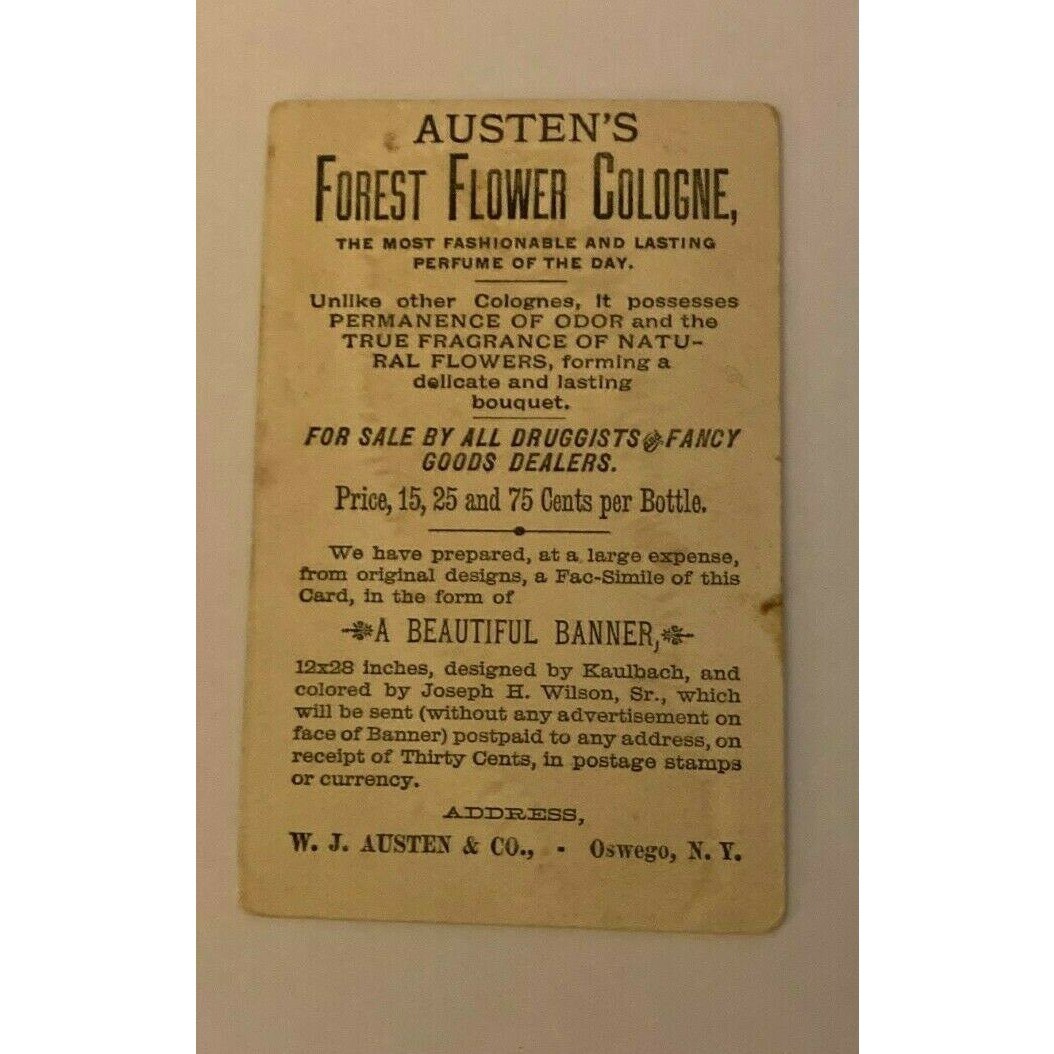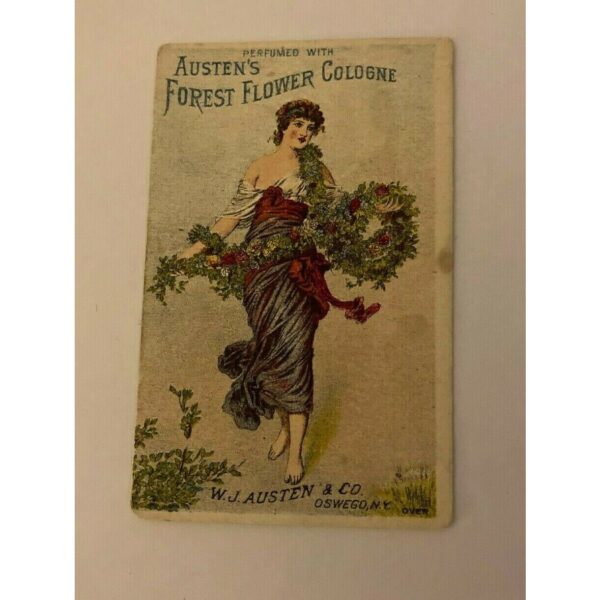 With Austen’s Forest Flower Cologne Woman Trade Card. W. J. Austen & Co. Oswego,