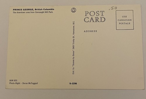 Prince George British Columbia Postcard Downtown Area From Connaught Hill Park