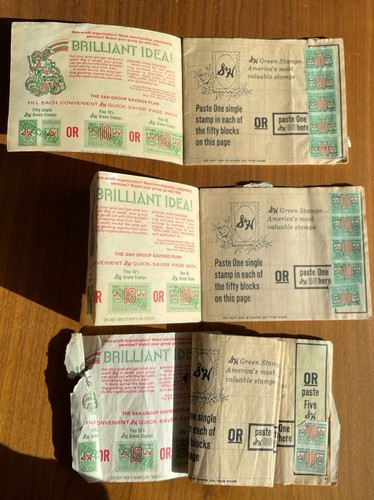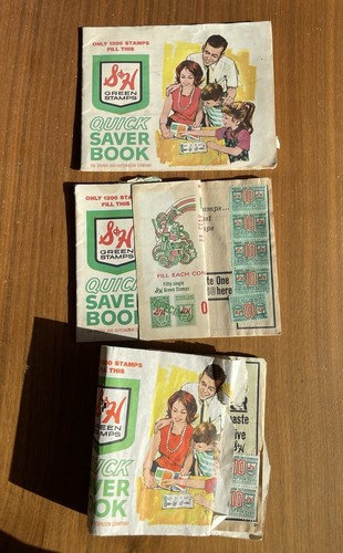 S &H Green Stamps Quick Saver Books With Stamps Lot Of 3 Vintage