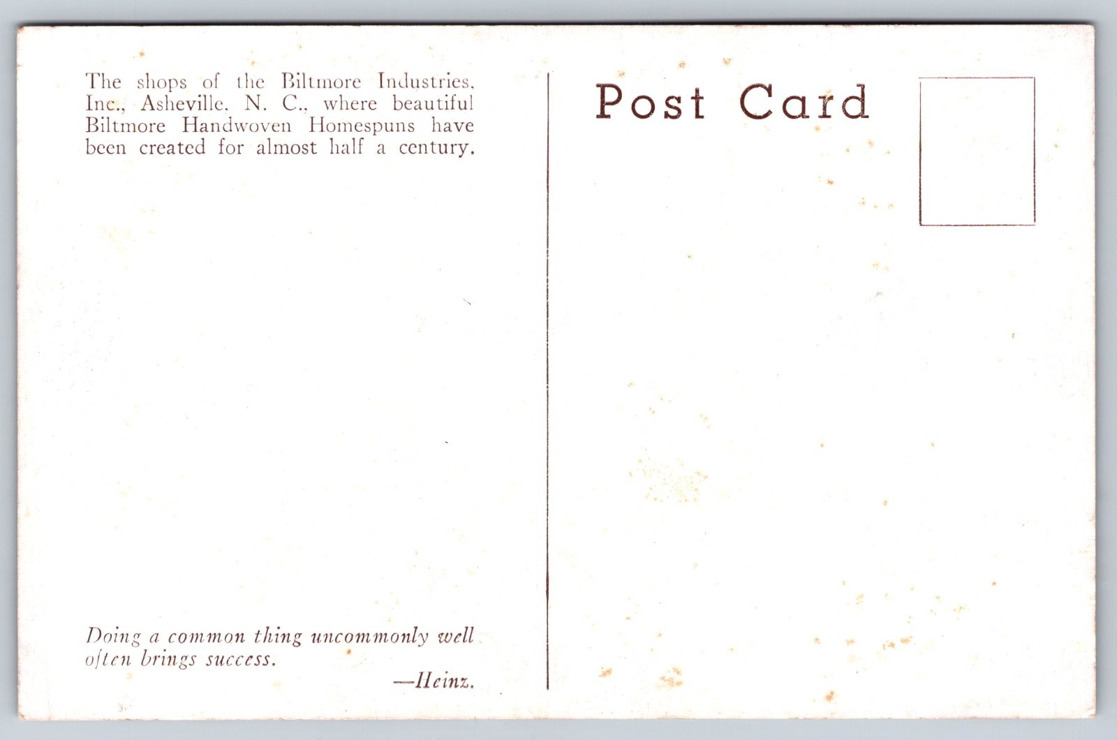 Shops Of Biltmore Industries Asheville North Carolina Postcard. It is in good condition. It does have