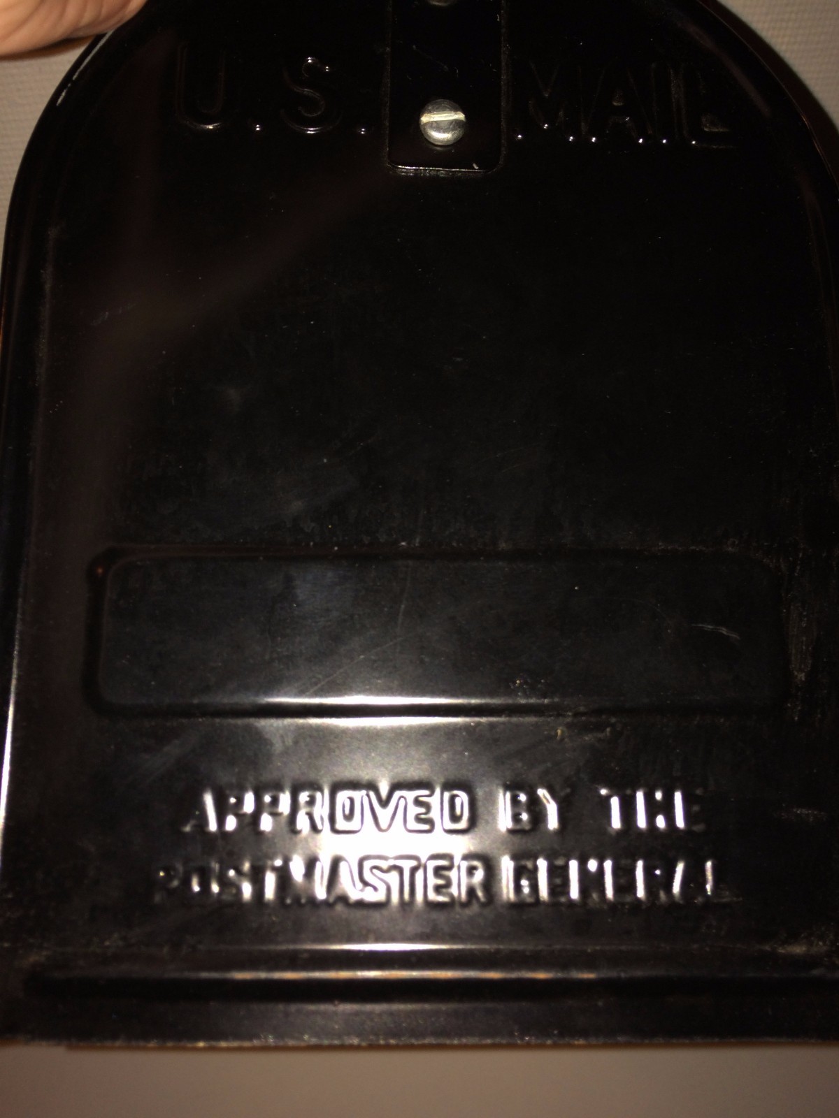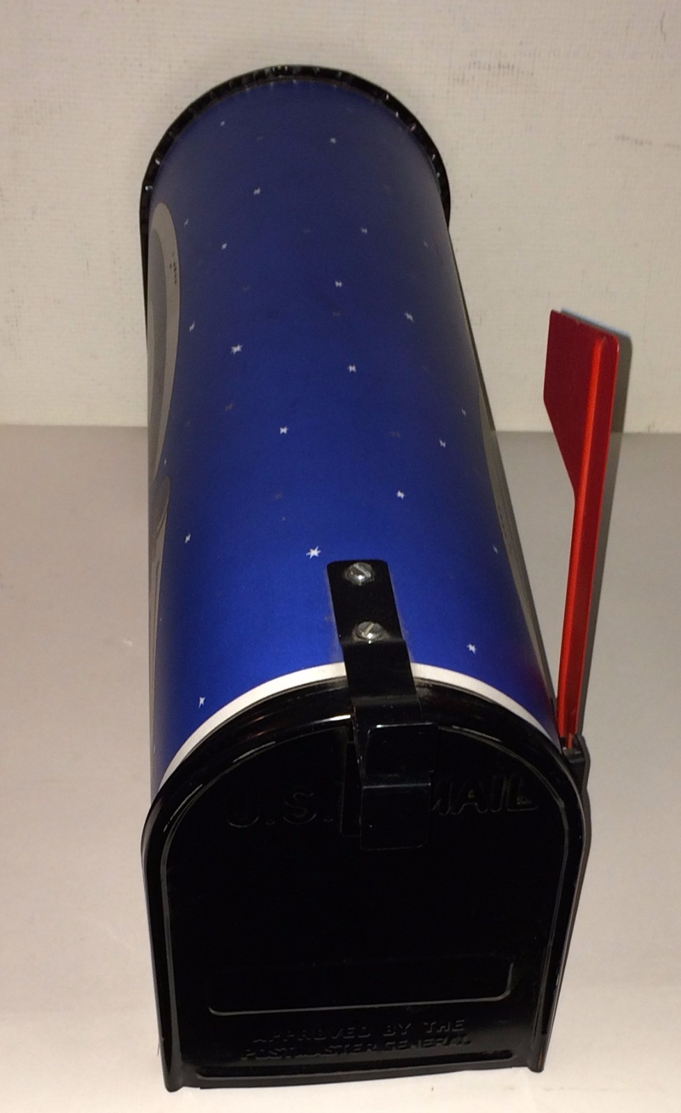 Here we have a Vintage Star Trek U.S.S. Enterprise Warp Speed Ahead Mailbox Bacova. It was made by Bacova. It is marked Approved By Postmaster General. The mailbox is approx 19″ wide x approx 9″ tall. It is in good condition. It does have some imperfections, scuffs and wear from use.