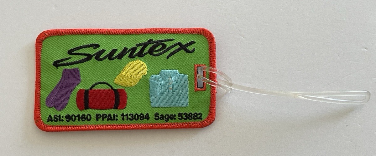 Here we have a Suntex Patch Luggage Tag. It is approx 4″ wide x approx