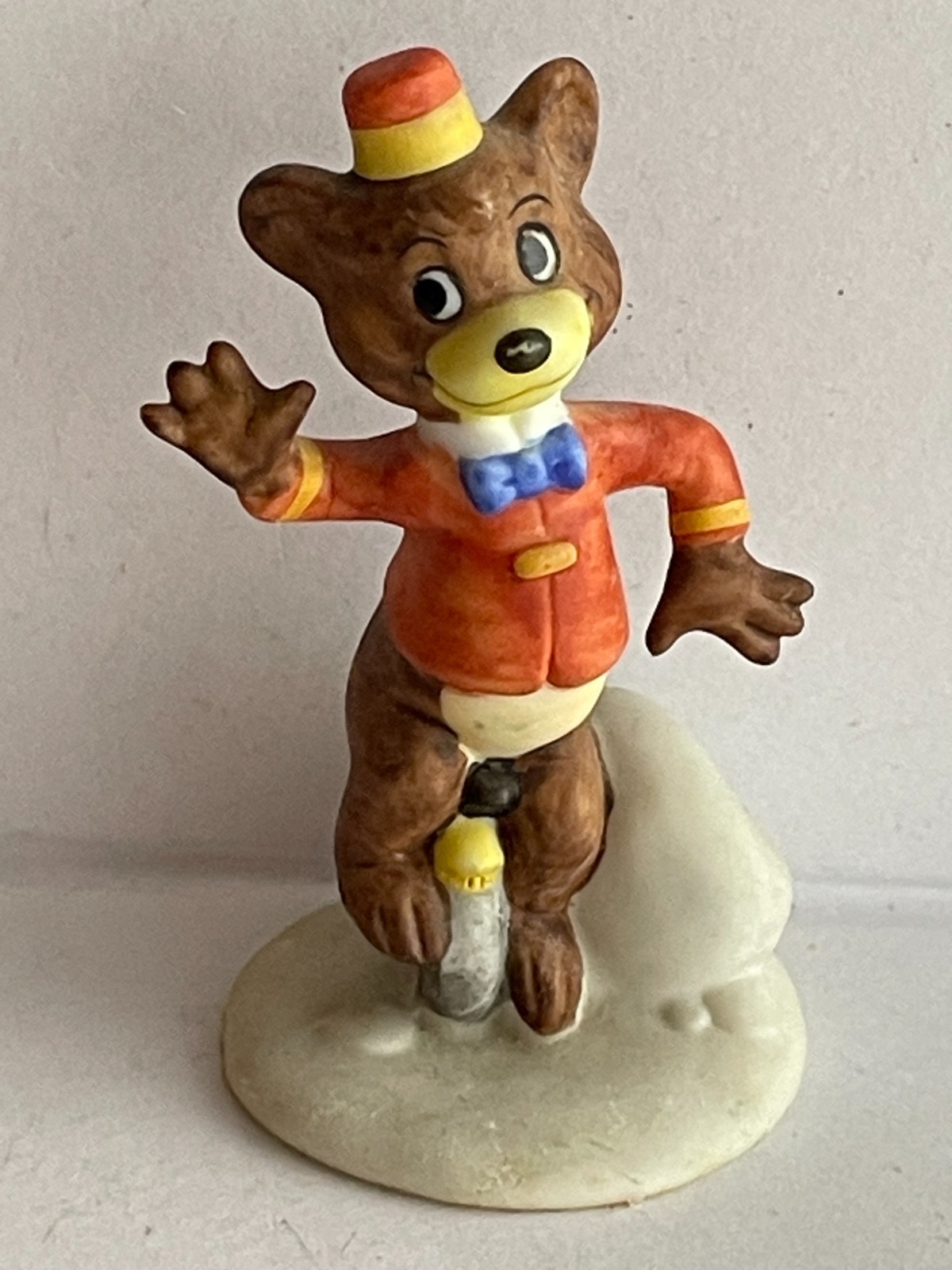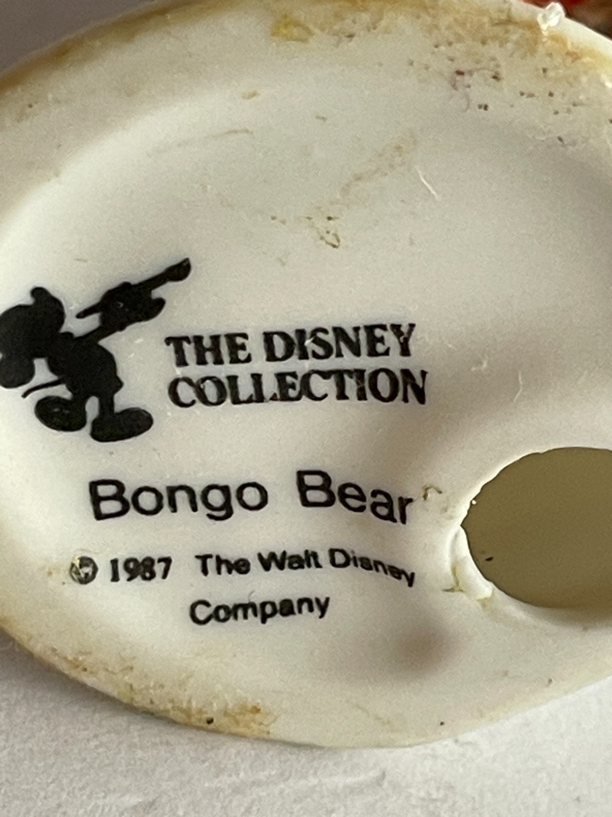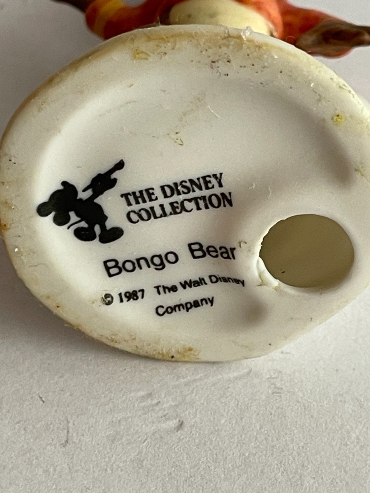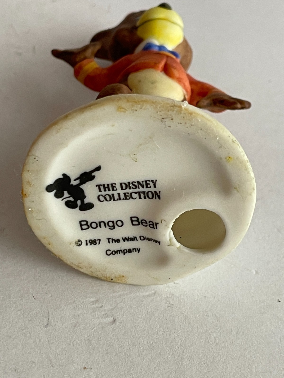 Here we have a Vintage The Disney Collection Bongo Bear On Unicycle Figurine. It was made by The Disney Collection. It is approx 2 1/2” tall. It is in good condition. It does have some wear and imperfections. See photos for more info.