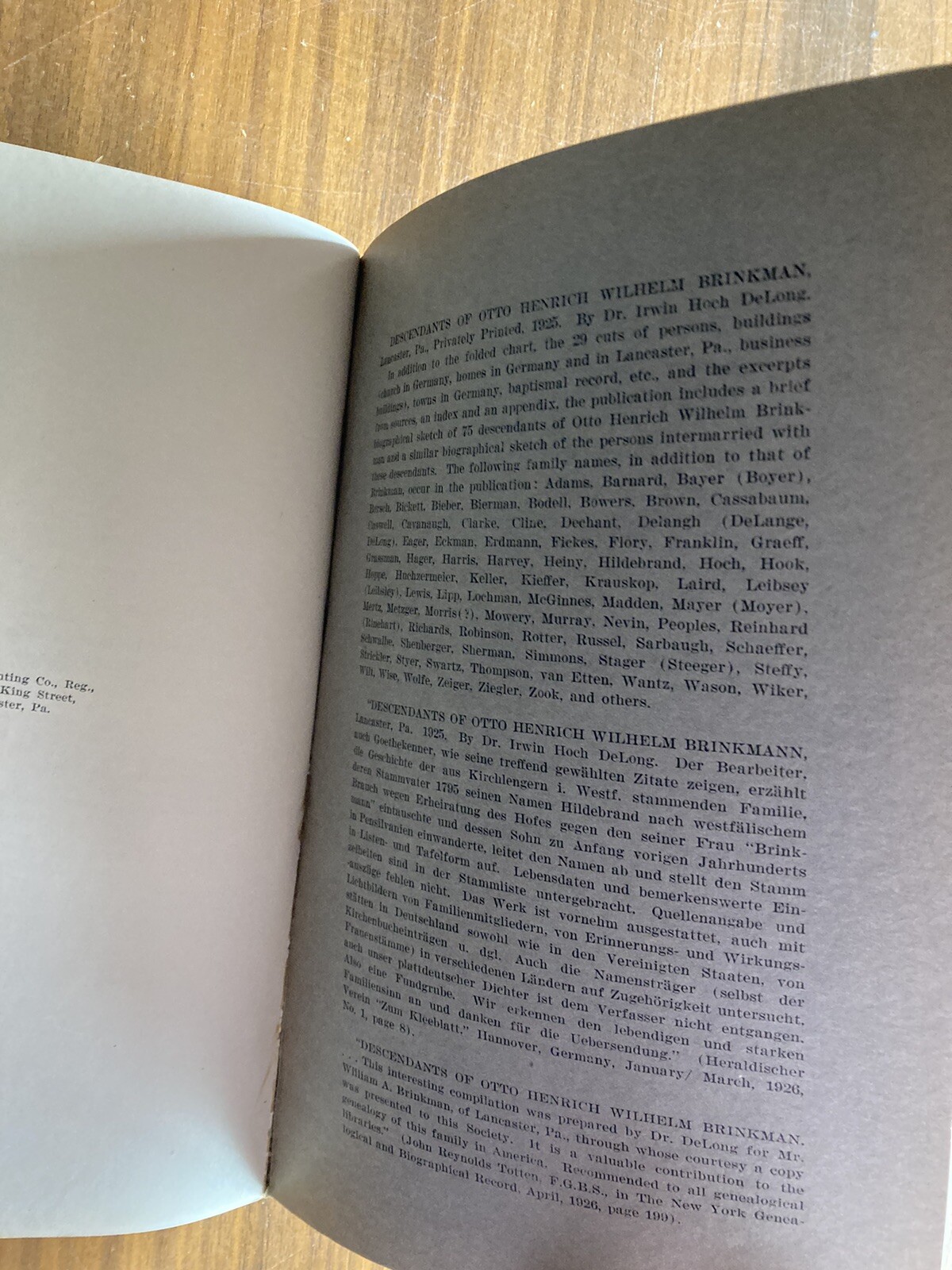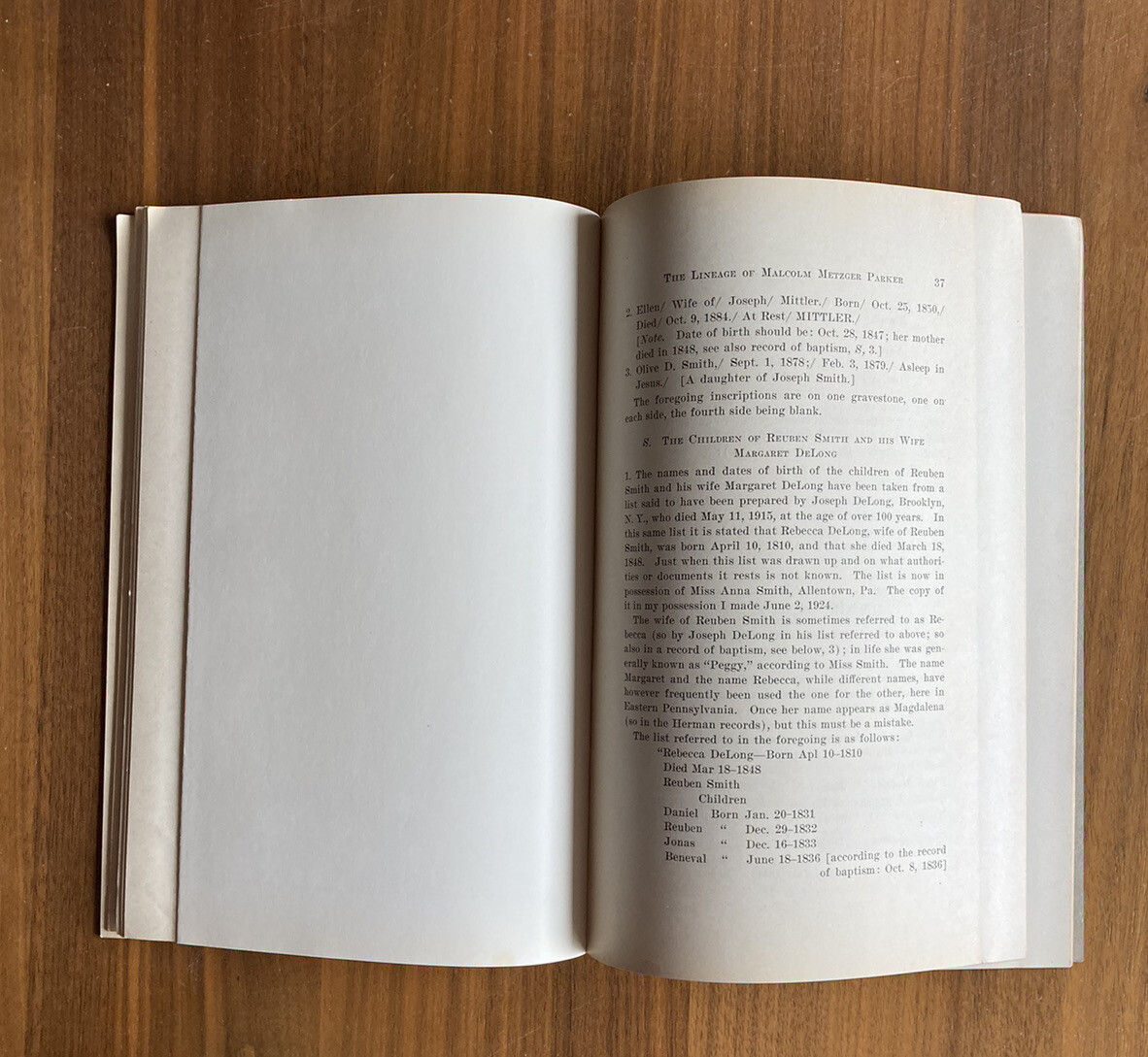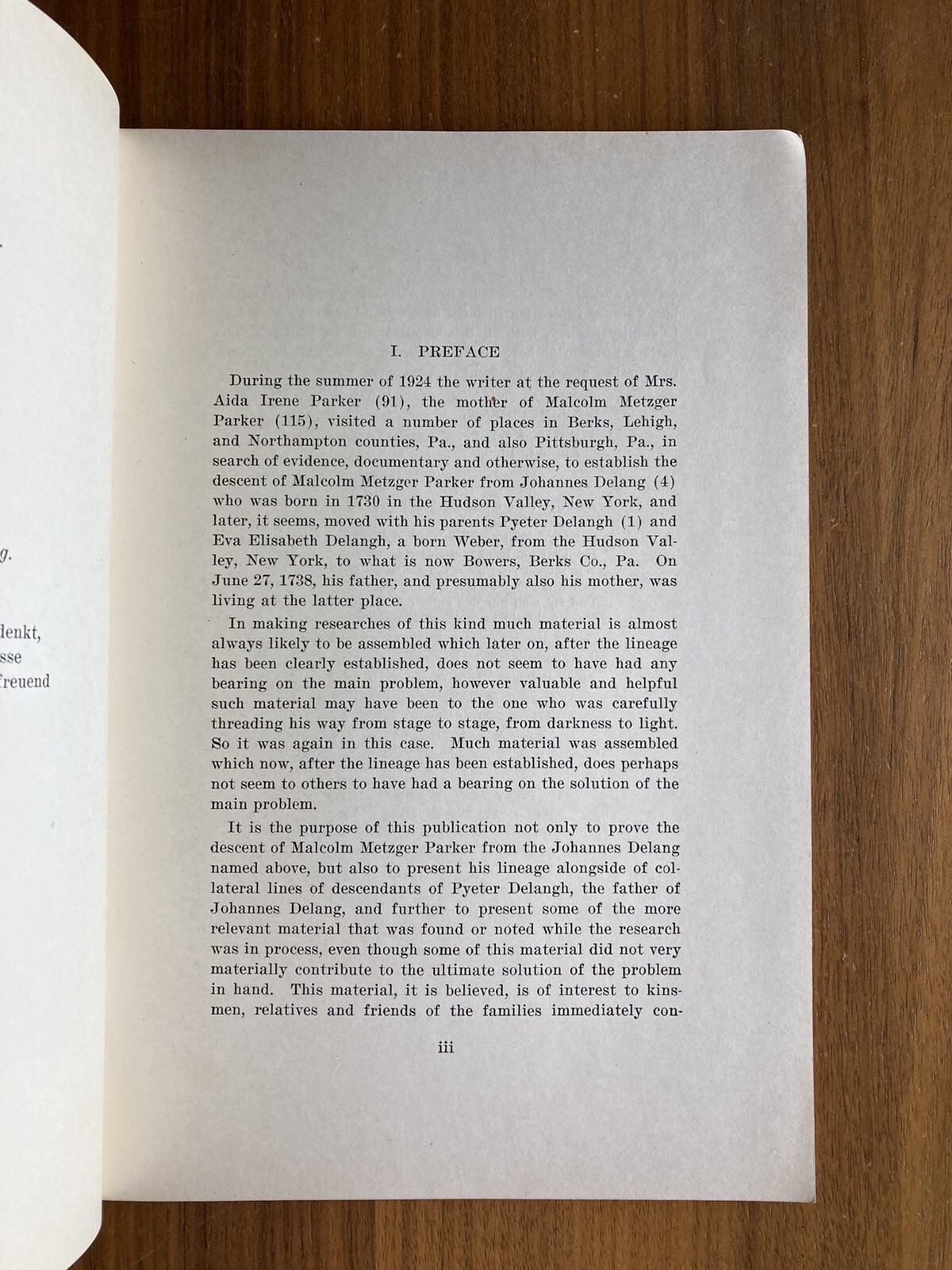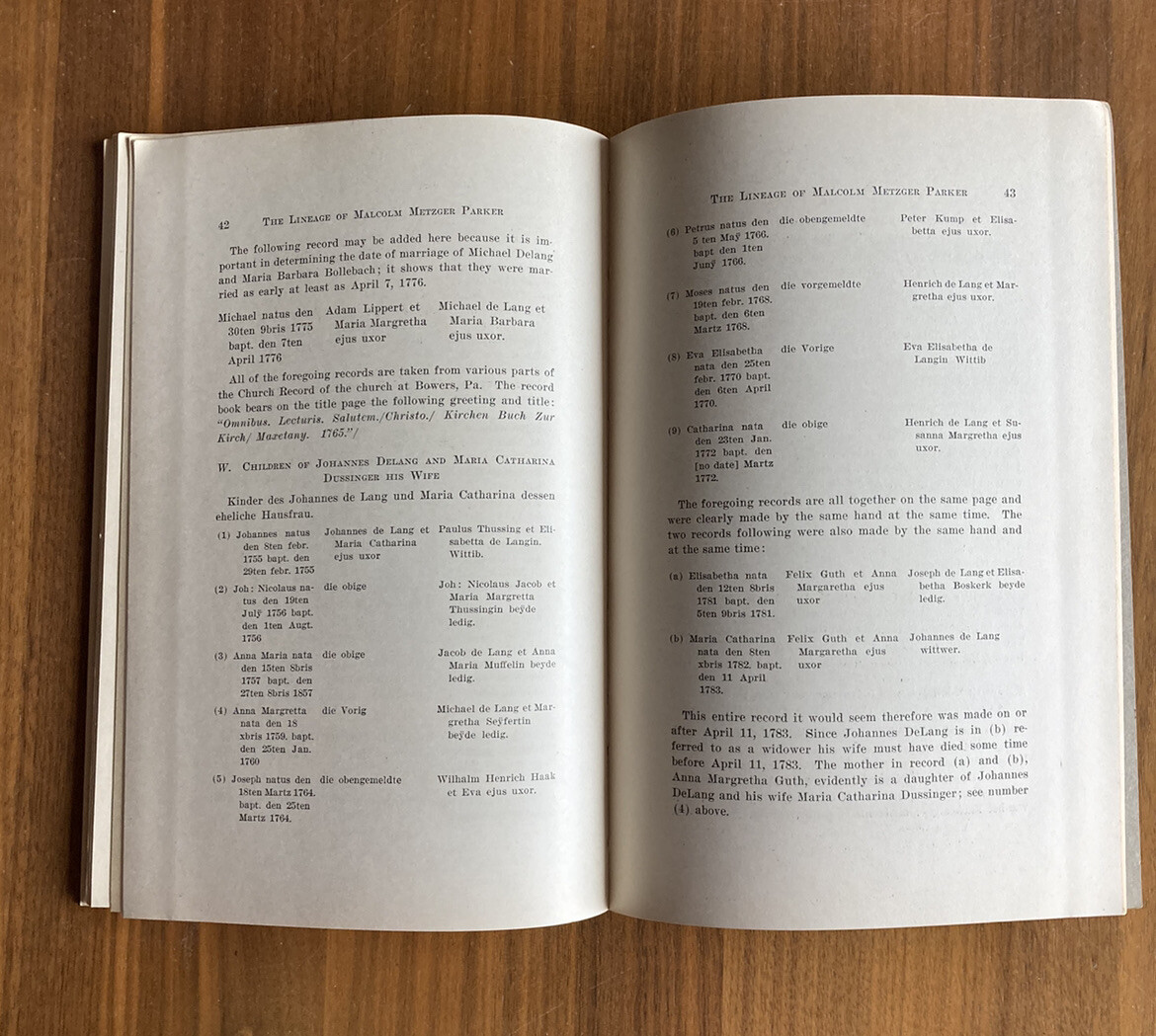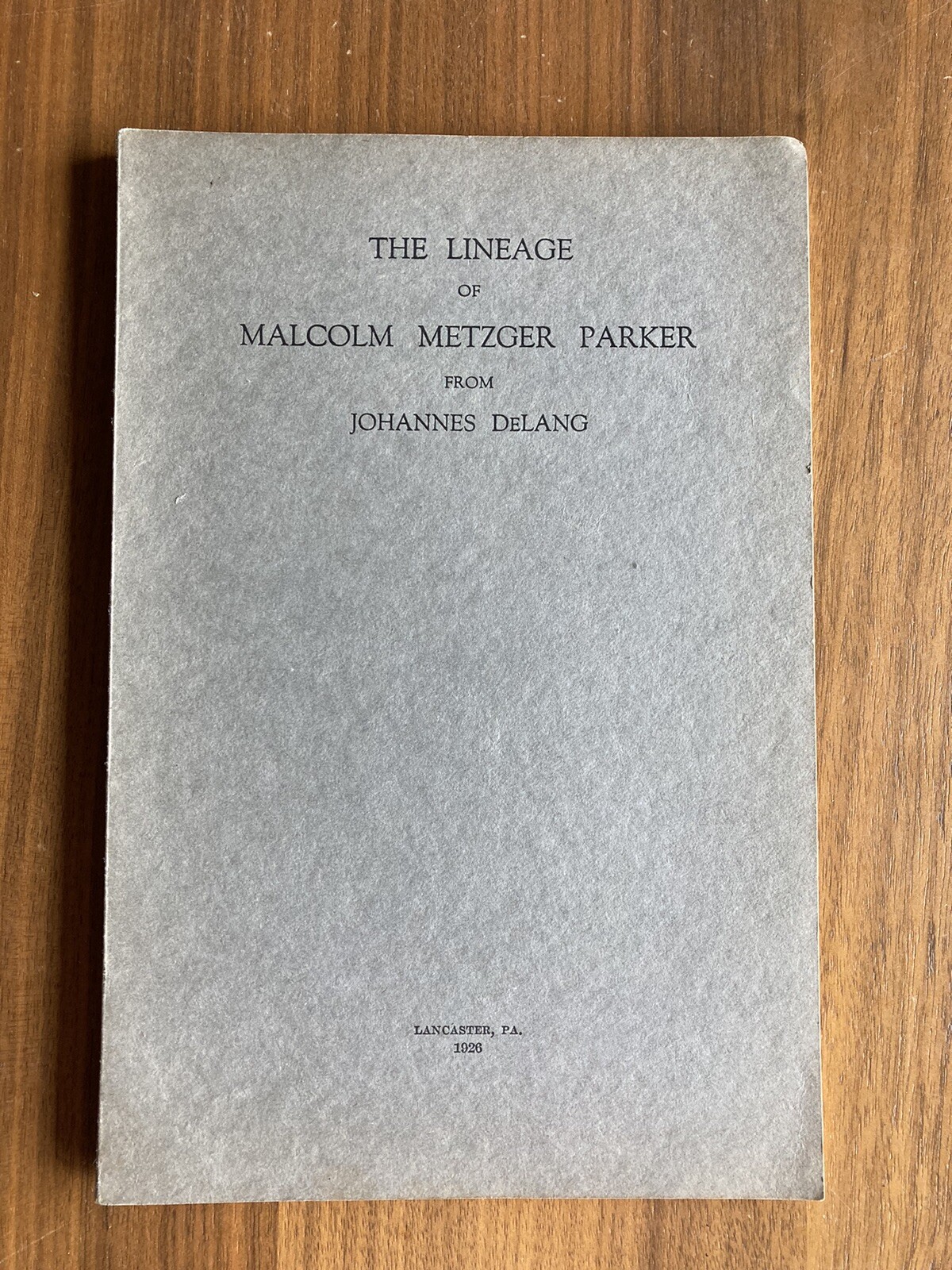 Lineage Of Malcom Metzger Parker From Johannes DeLang Lancaster PA 1926 Book. It has