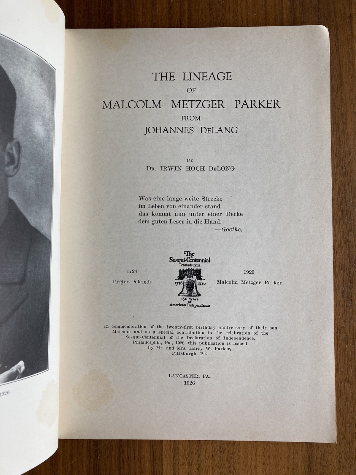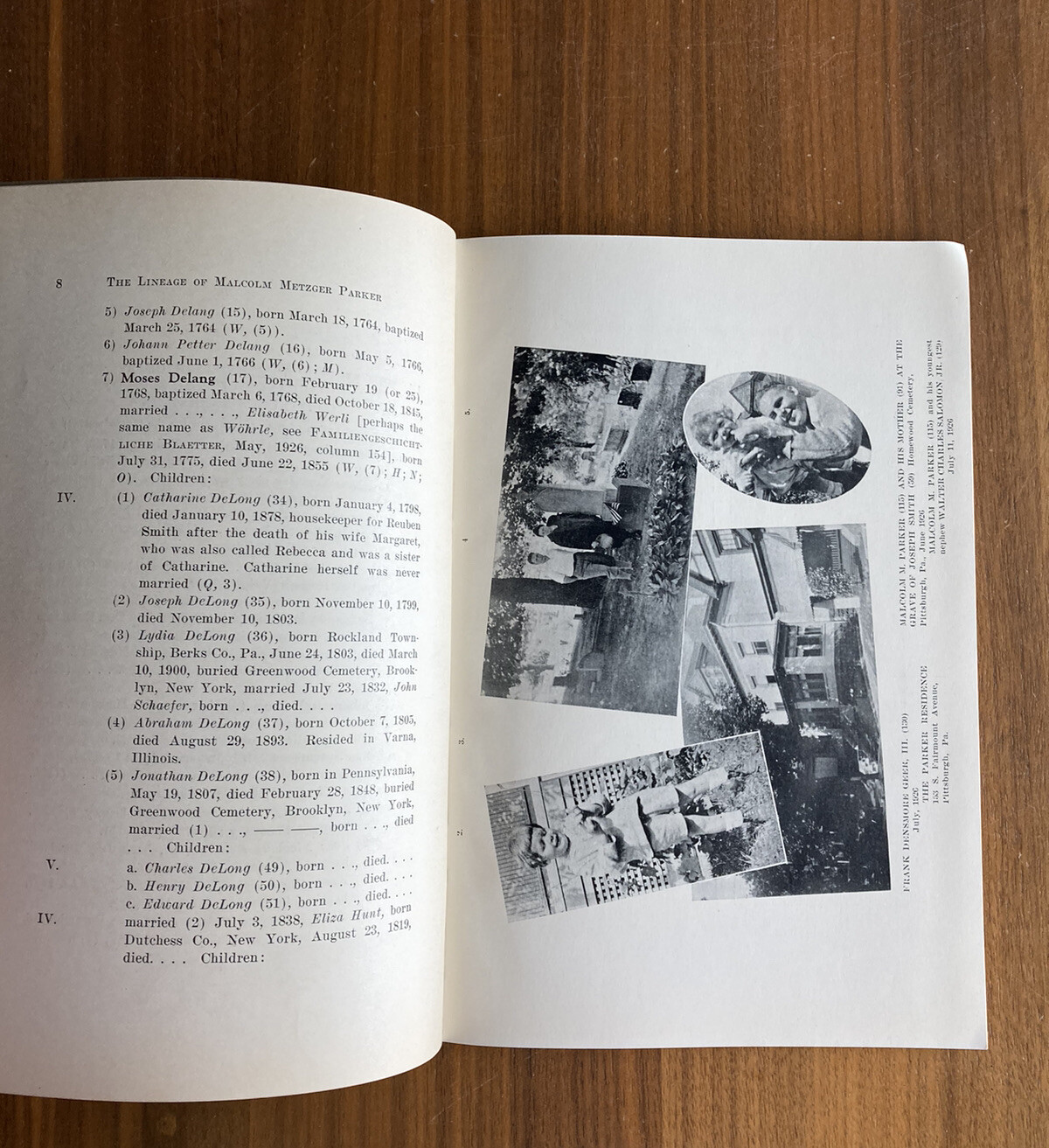 The Lineage Of Malcom Metzger Parker From Johannes DeLang Lancaster PA 1926 Book