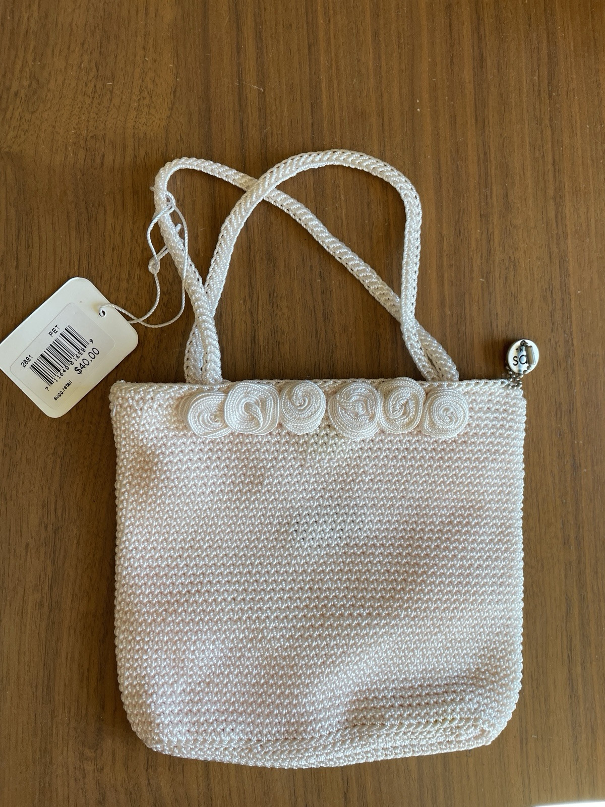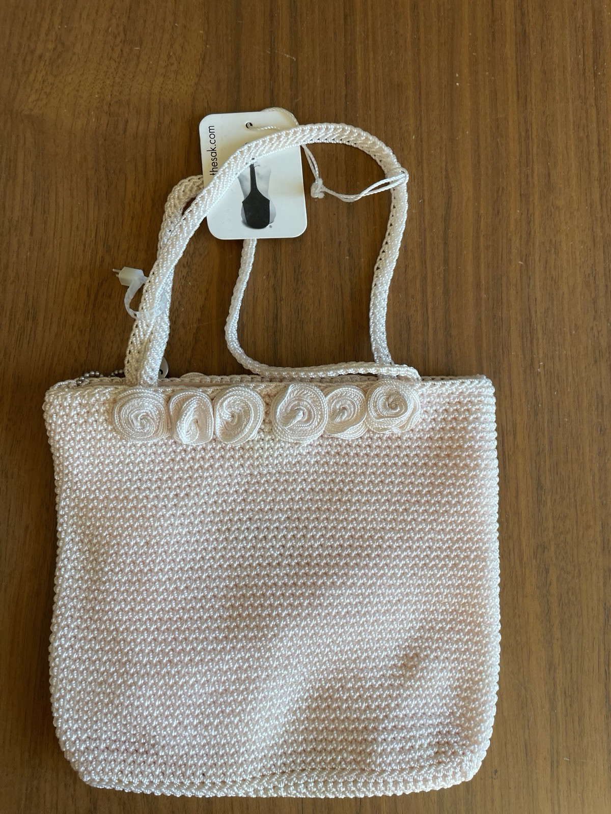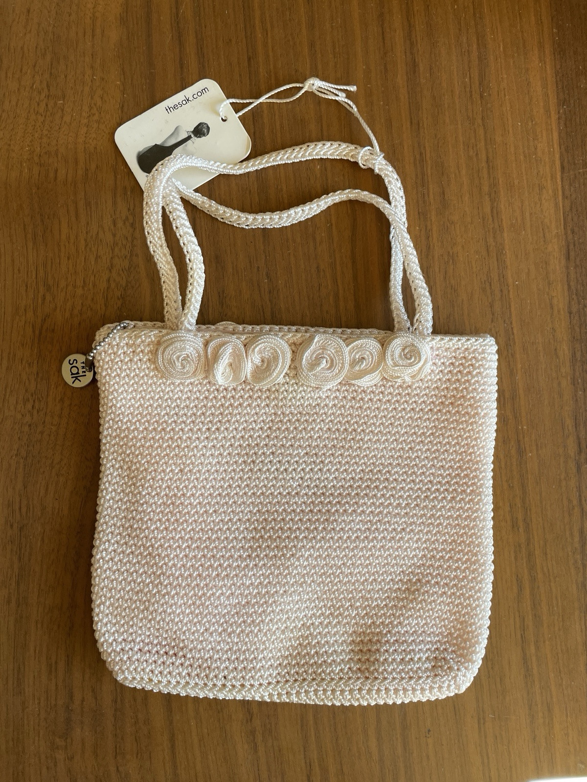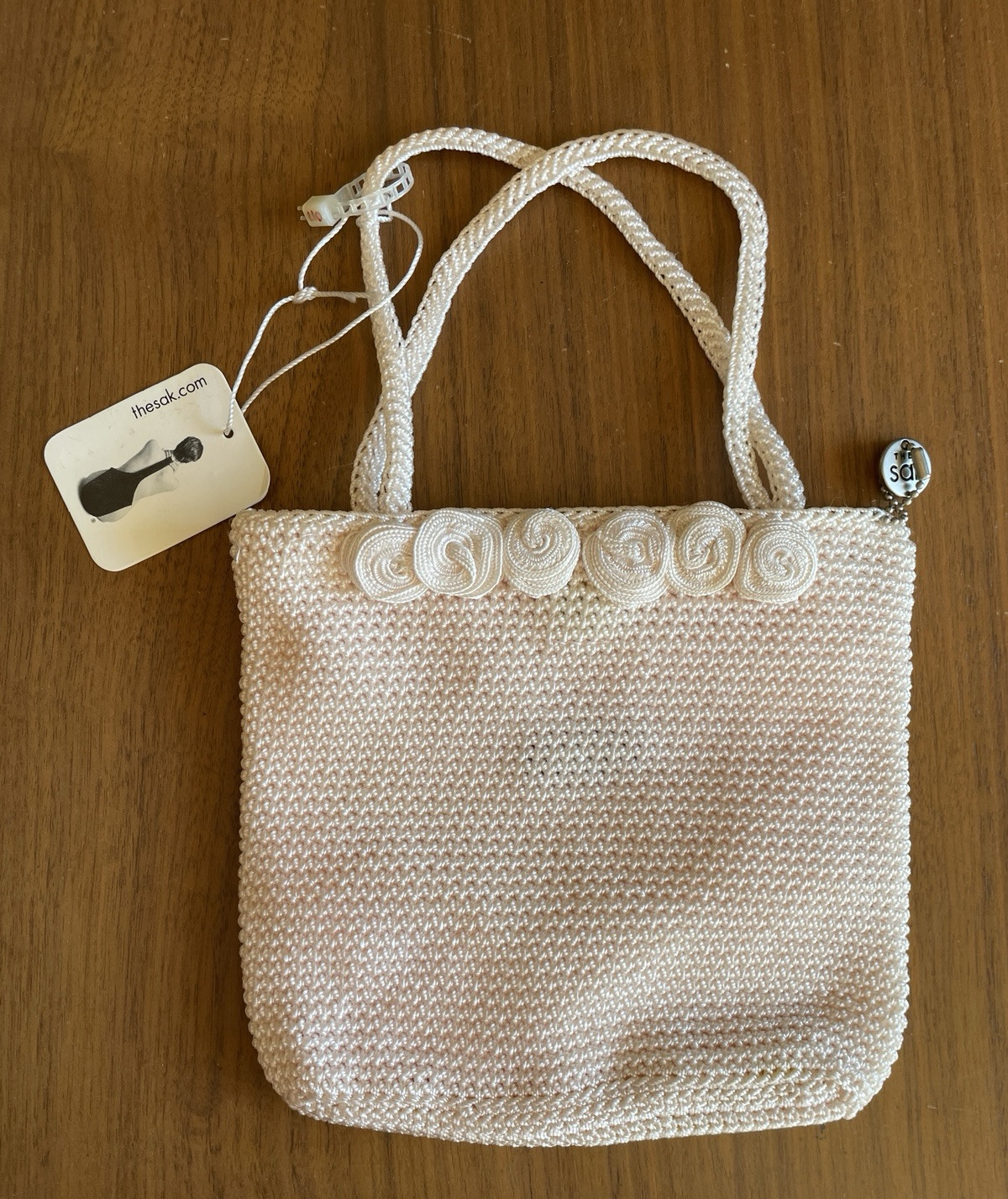 The SAK Crochet Handbag Purse Pink With Flowers Sma Handle Bag