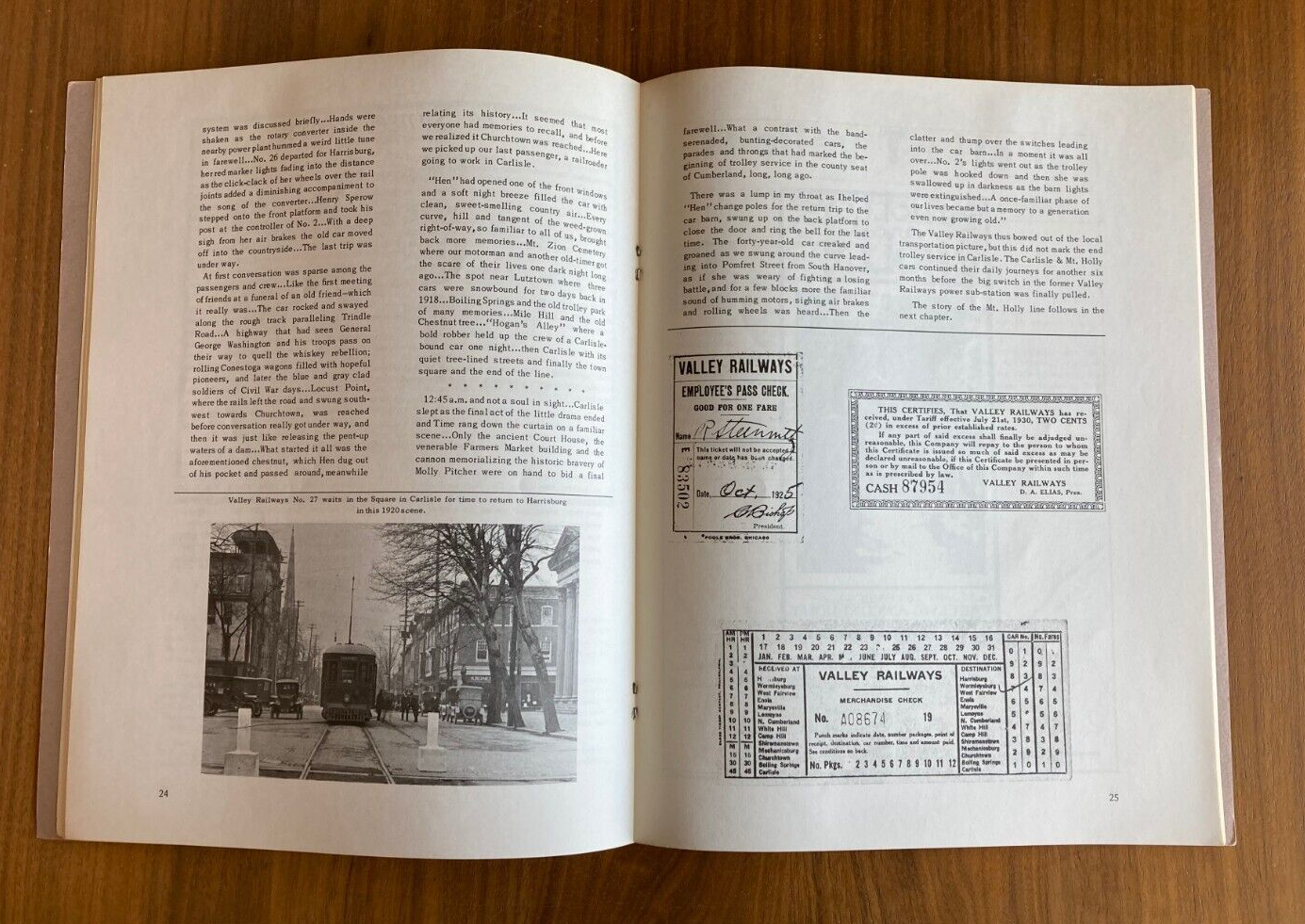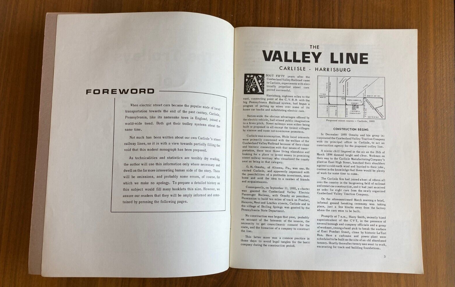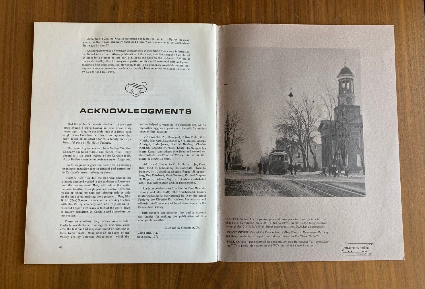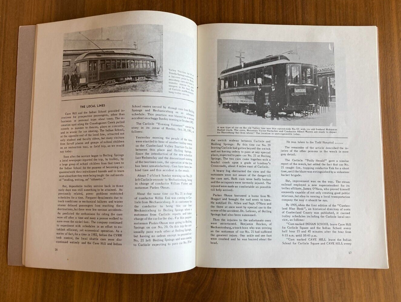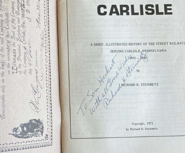 Here we have a Vintage The Trolleys Of Carlisle By Richard Steinmetz Booklet. Boiling Springs-Newville Mt. Holly Springs Mechanicsburg-Harrisburg. It is signed by the author. The program is approx. 11″ tall x approx 8 1/2″ wide. It is in good condition. It does have some wear and imperfections. See the photos for more info.
