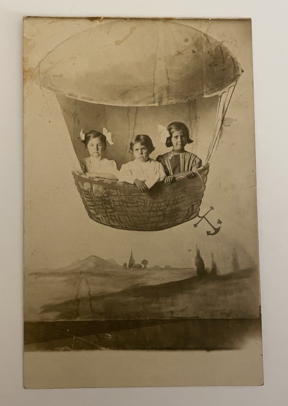 Three Kids In Hot Air Balloon Postcard RPPC Prop Photo