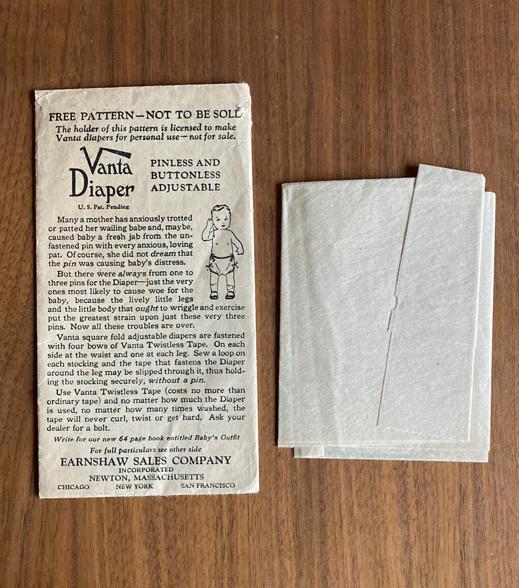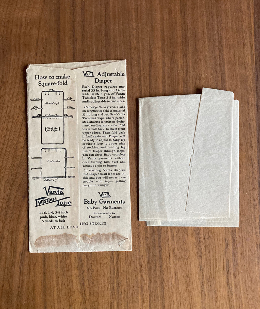 Vanta Baby Garments Advertising Envelope & Vanta Diaper Pattern Earnshaw Vintage