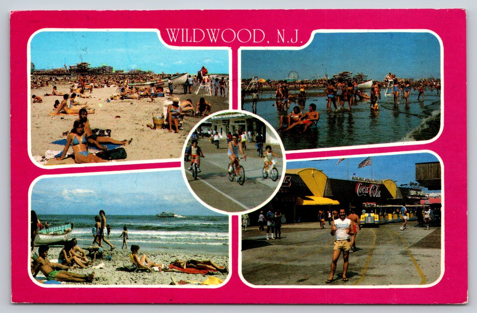 Wildwood NJ Beach Scenes Postcard Coca Cola Sign Postcard Girls In Bikinis
