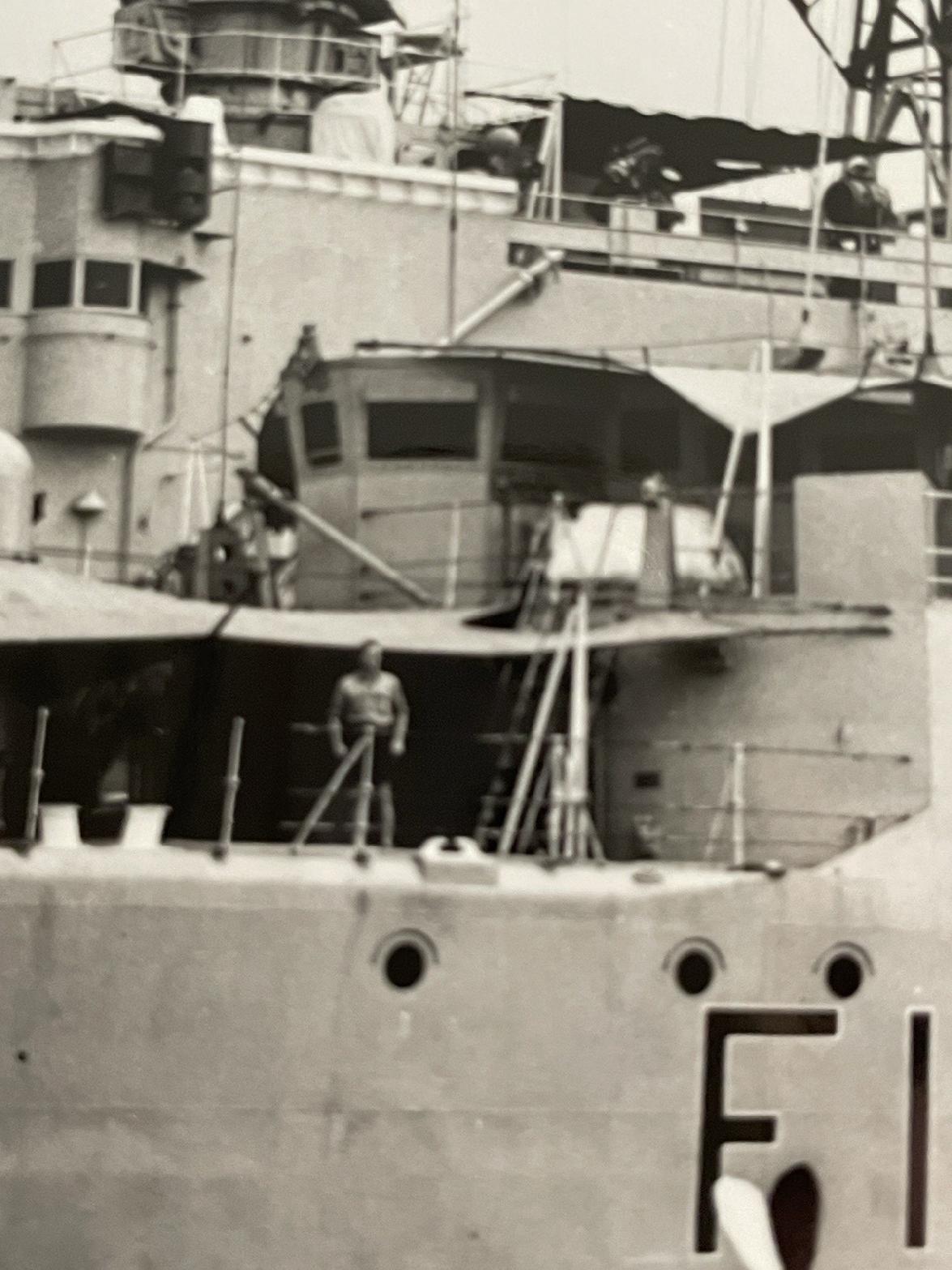 Yarmouth Royalist Behind Yokohama Ship Photo By Shizuo Fukui 1961 Man On Board Vintage Black & White Photo